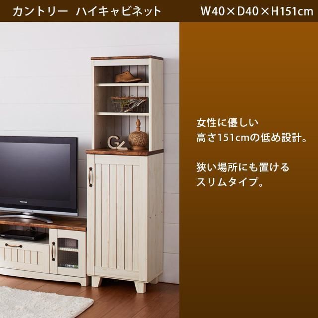 カントリー ハイキャビネット ホワイト 151cm