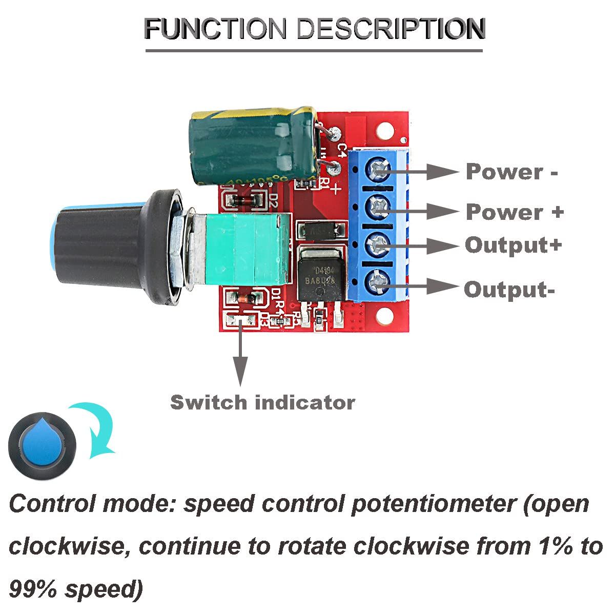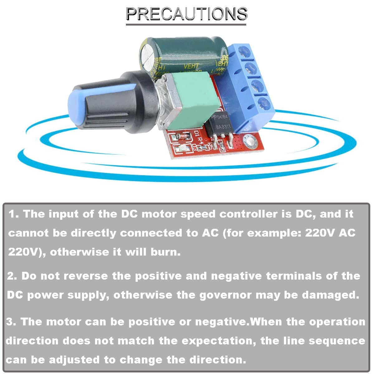 【高電流出力】: モータースピードコントローラーは、DCモーターまたはその他のDC負荷に5Aの連続電流を簡単に供給できます。高電圧および高電流のリセット可能なヒューズ、過電流の自動切断、数秒間冷却するための電源オフ、ヒューズの自動回復。