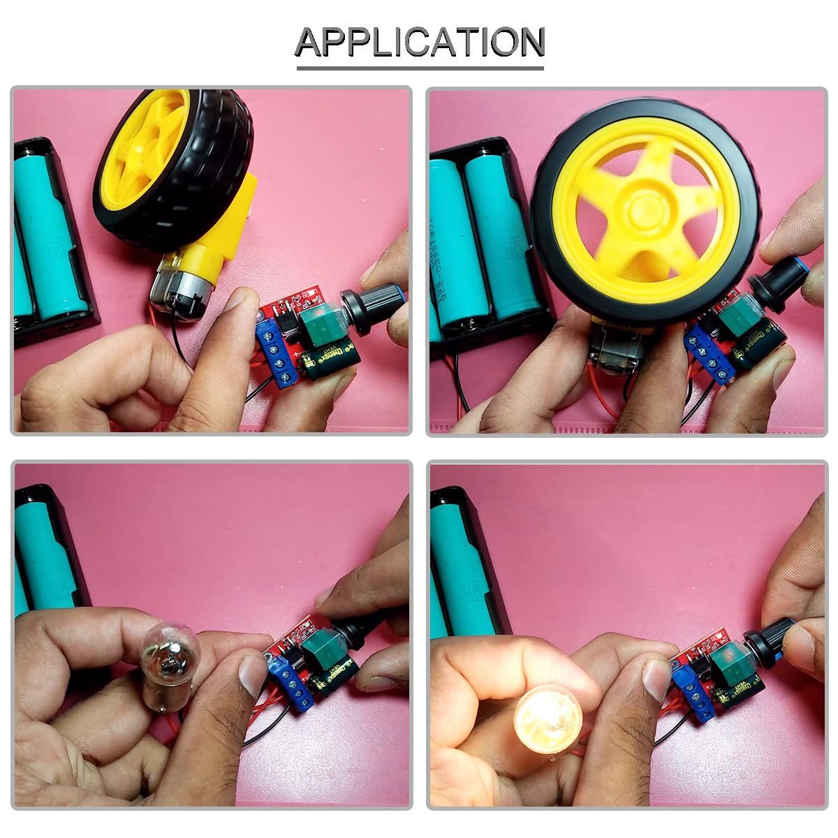 【適用範囲】:DCモーターの制御速度とライトの明るさに広く適用され、無段階の速度調整スイッチを実現します。