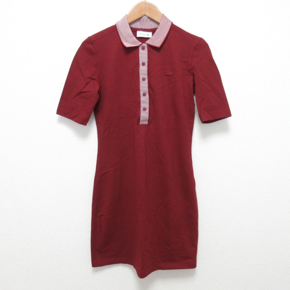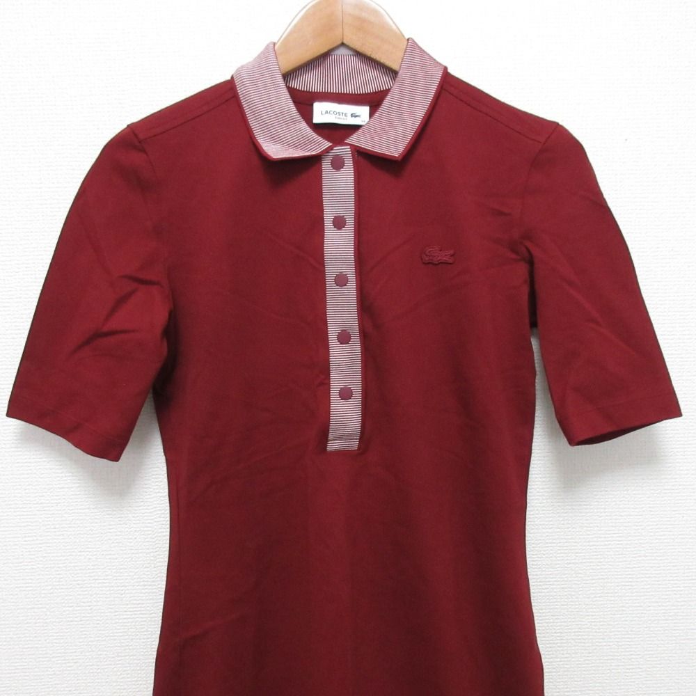 【商品名】LACOSTE ラコステ スリムフィット 半袖 ポロシャツ ワンピース サイズ34 ボルドー