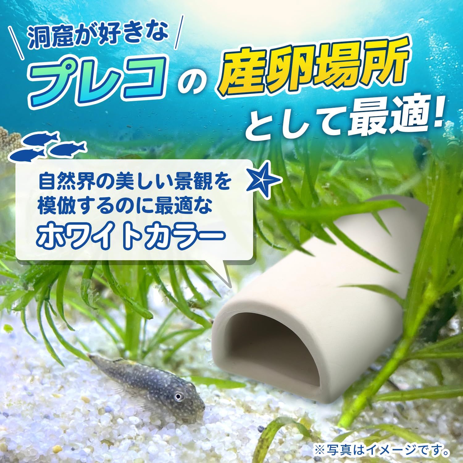 プレコ・熱帯魚・ザリガニ・エビなどの快適な隠れ家&産卵場所として最適な陶器製産卵筒!【隠れ家として】産卵場所として以外にも隠れ家としてもお使いいただけます。シェルターを用意してあげることで魚たちのストレスを軽減し繁殖環境を整えてあげましょう!【安心の陶器製】水質に影響を与えにくく、稚魚やエビにも優しい素材。丈夫で長持ちするので長期間使用可能です。※陶器製の為、落下等のダメージには強くありません。設置の際はぶつけないよう慎重に行ってください。【ホワイトカラー】白砂やサンゴ、レイアウト素材相性抜群!白色をアクアリウムに取り入れることで水槽内を明るく美しく演出します。【レイアウト自由自在】土管や石、流木と組み合わせてオリジナルのアクアリウムを作れるのが魅力!シンプルながらも機能的なデザインでアクアリストのこだわりを形に!水槽のアクセントとして取り入れてみませんか?