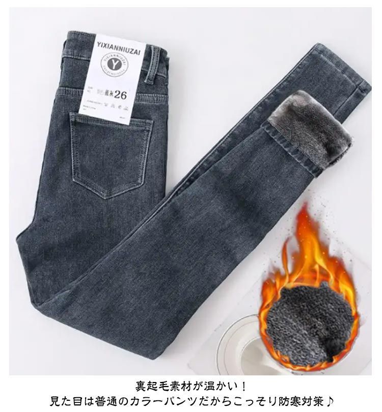 裏起毛素材が温かい!見た目は普通のカラーパンツだからこっそり防寒対策♪