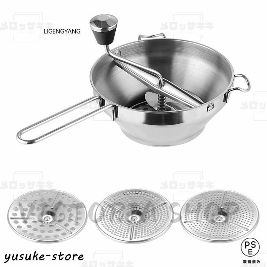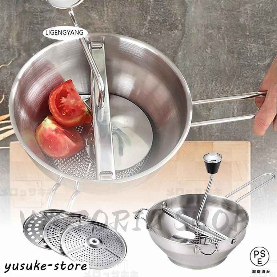 フードミル、裏ごし器 フード ミル 手動 うらごし器 手動 フードミル ムーラン裏ごし器、 3種類替刃付き 裏ごし器 フード ミル、手保護 安全性