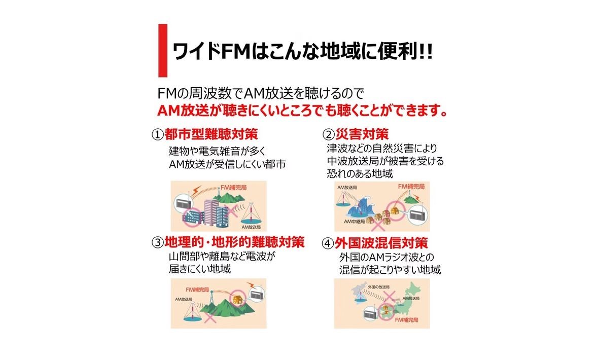 【お好み選局ボタンでラジオ選局も簡単。ワイドFMにも対応のラジオ】