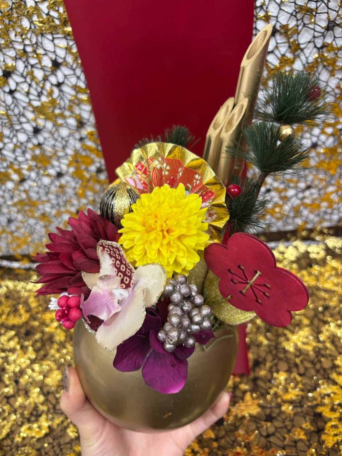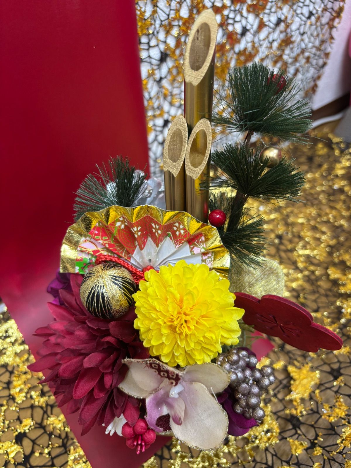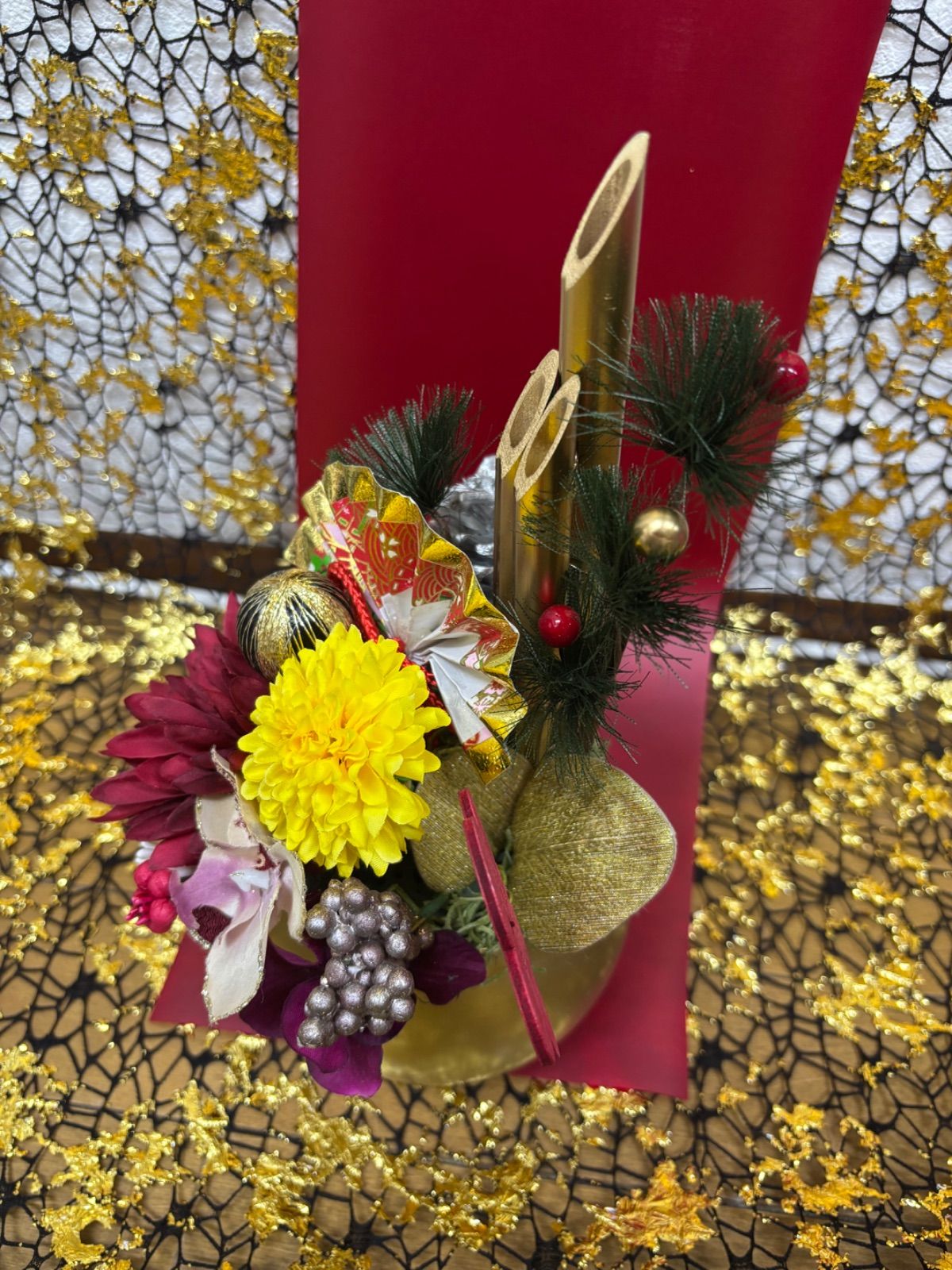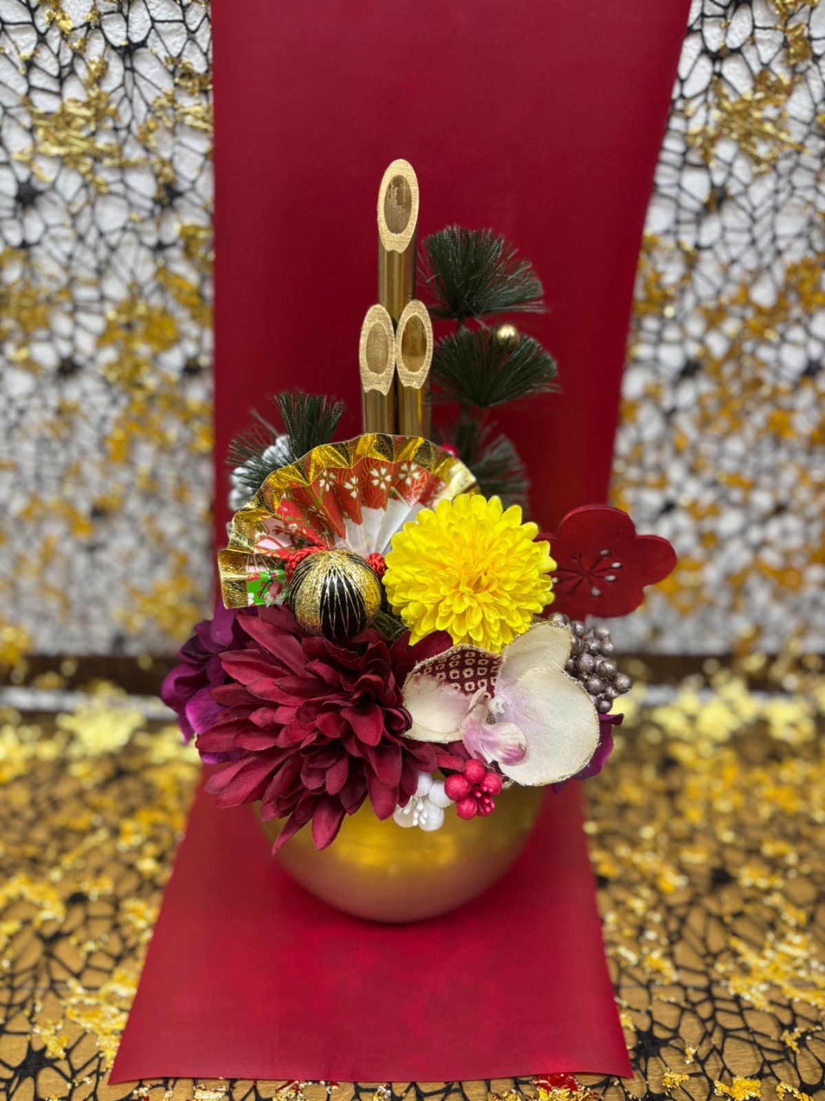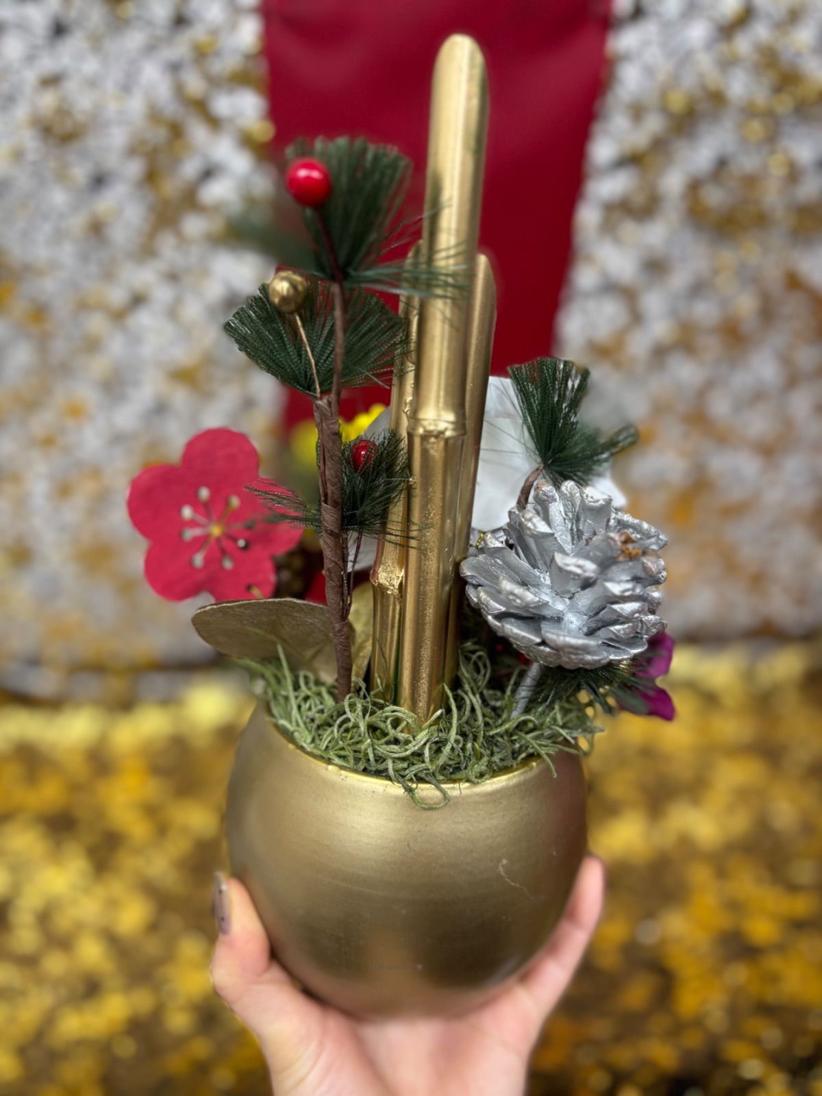 ゴールドの竹と鉢がゴージャスな雰囲気に仕上げてくれています。