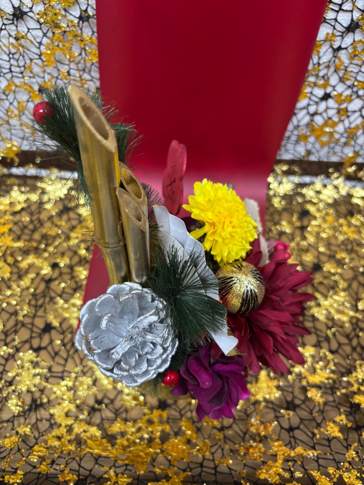 造花で造ったミニ門松飾りです。