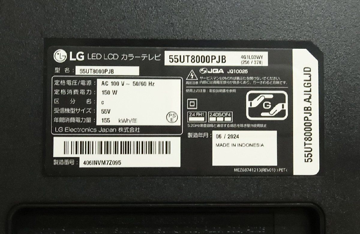 【 商 品 名 】 LG 55インチ 4K 液晶テレビ 55UT8000PJB 2024年製