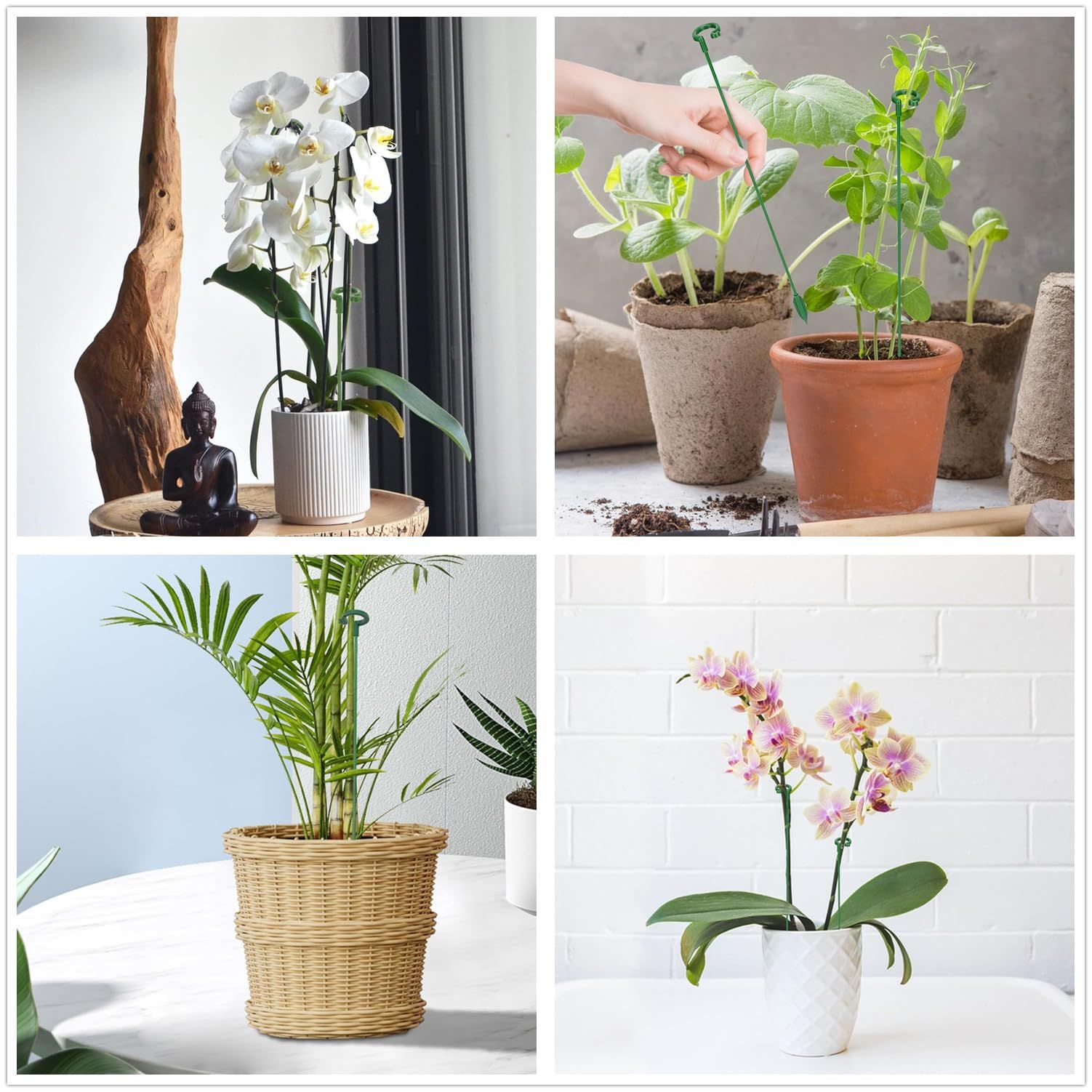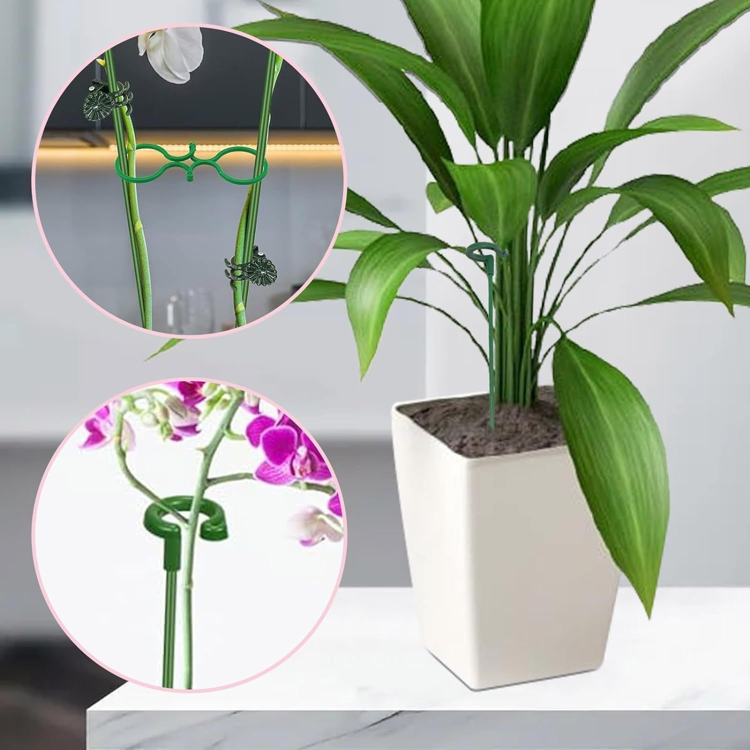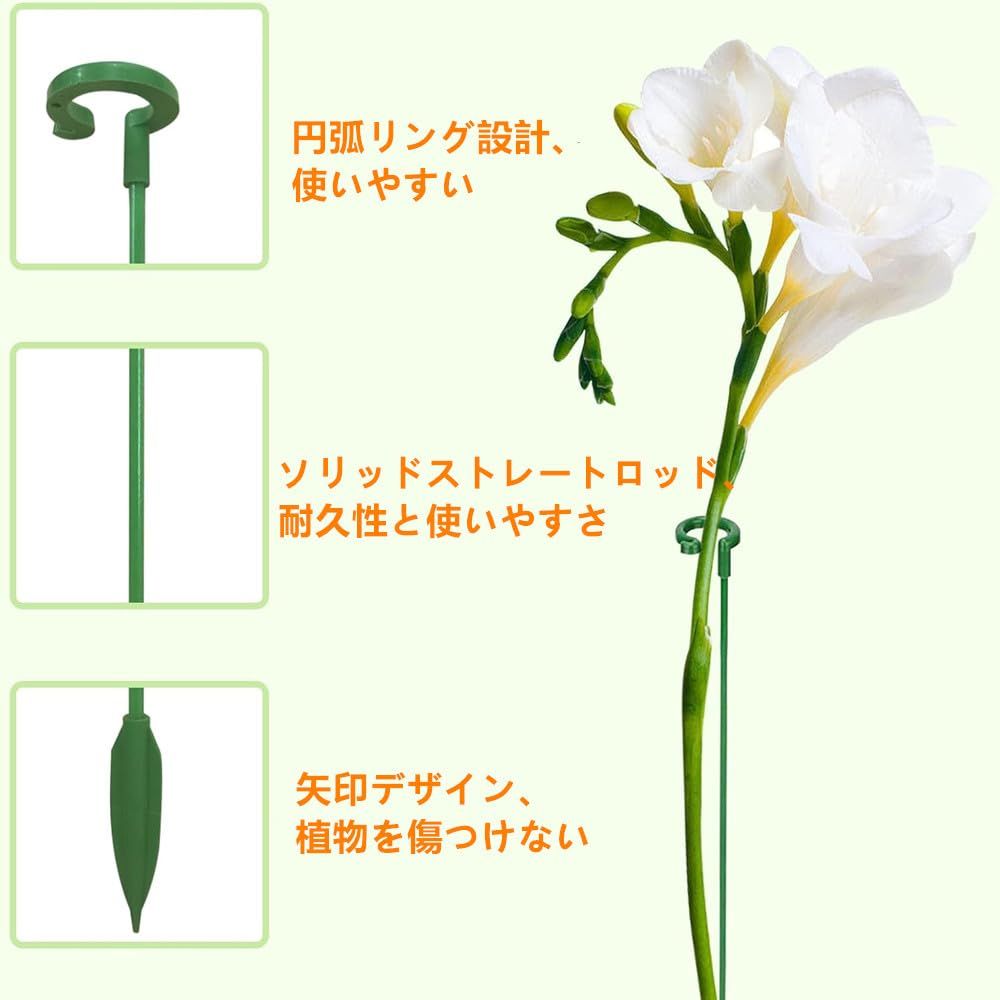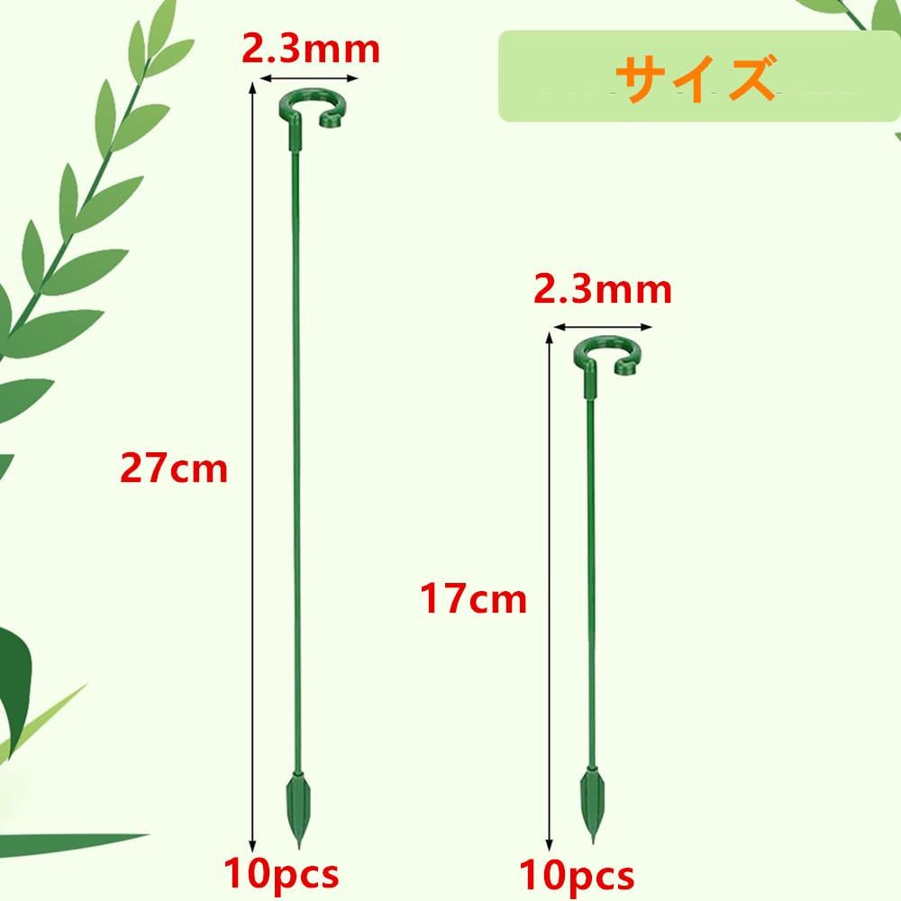 【製品仕様】2種類の長さの植物支柱が含まれています。17cm*10本 + 27cm *10本、合計20本組セット。リングの幅は0.6インチです。 植物の茎が太すぎる場合は、開口部の溝を手で少し広げると、植物がスムーズに通るようになります。