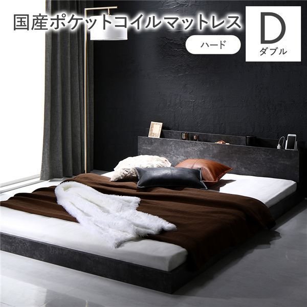 ■ダブルストーングレー国産ポケットコイルマットレス付き(ハード)[当ページ]