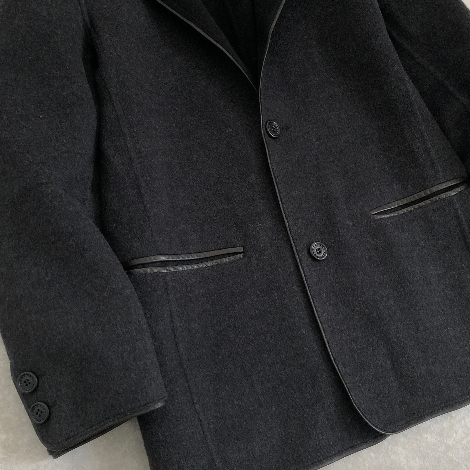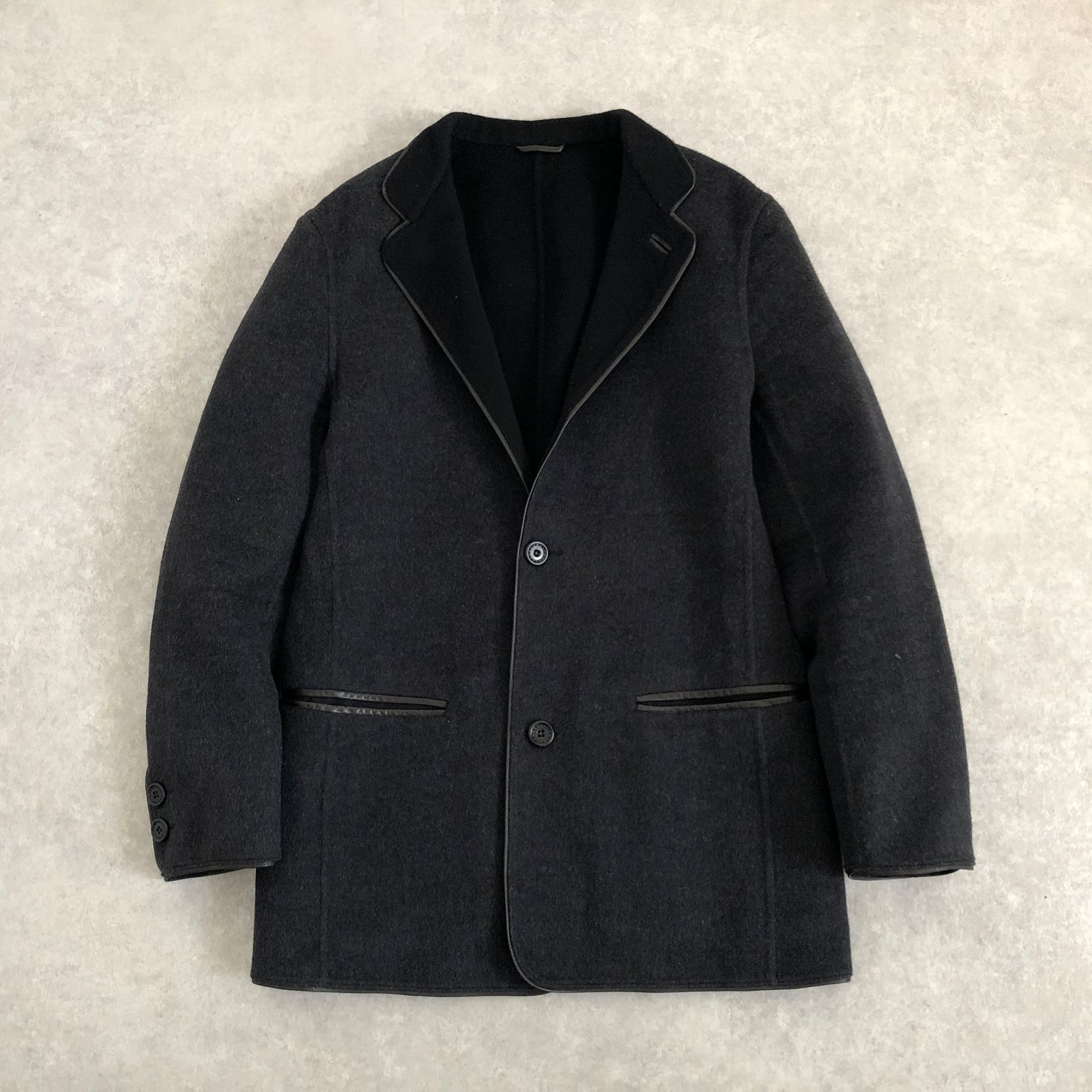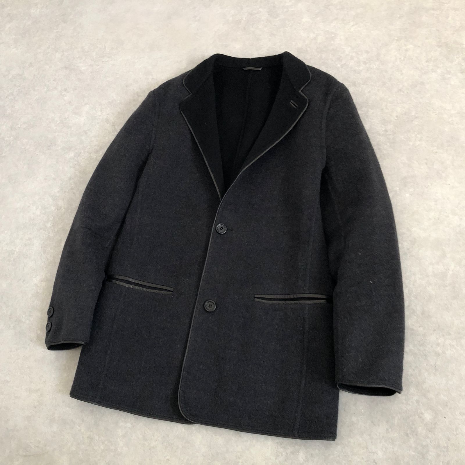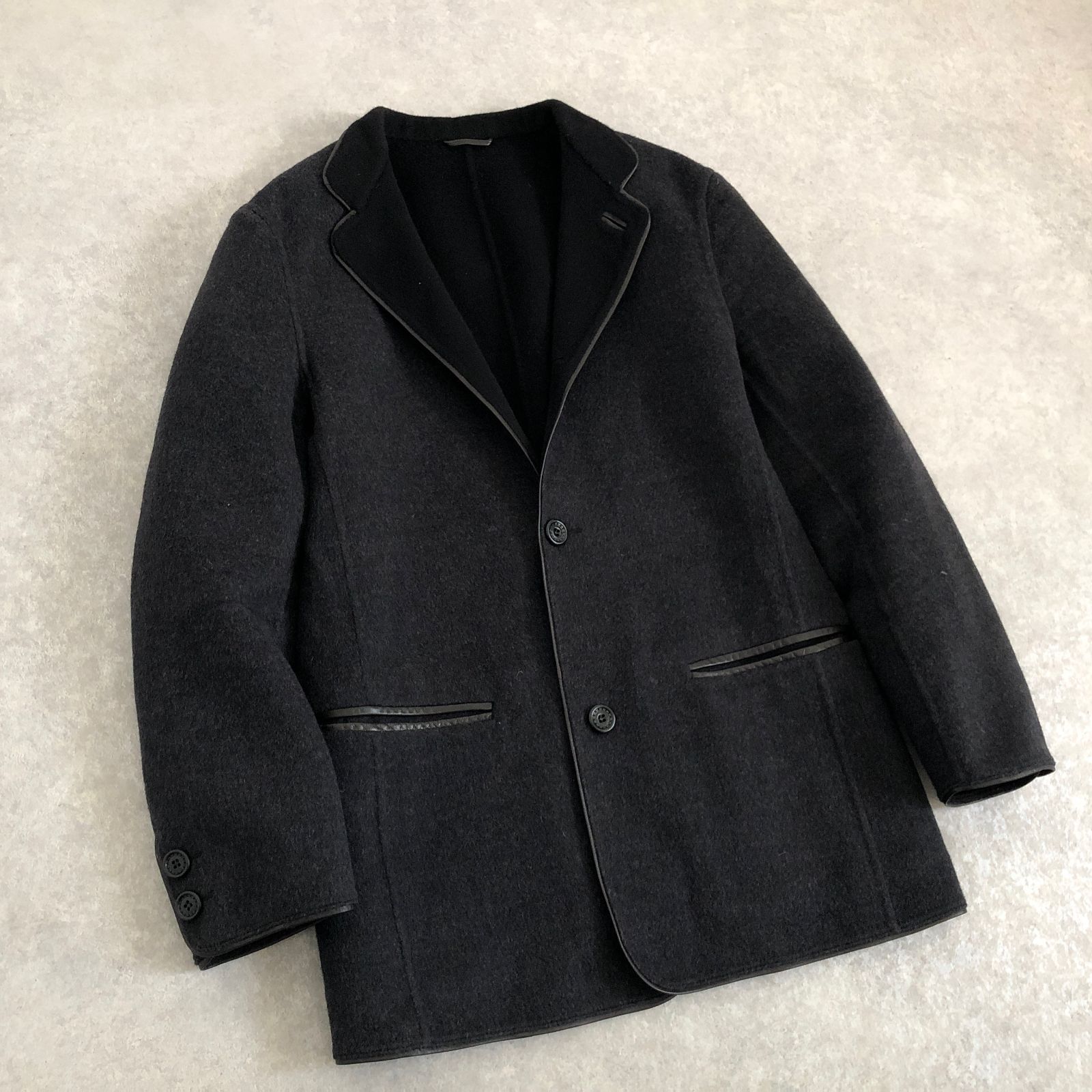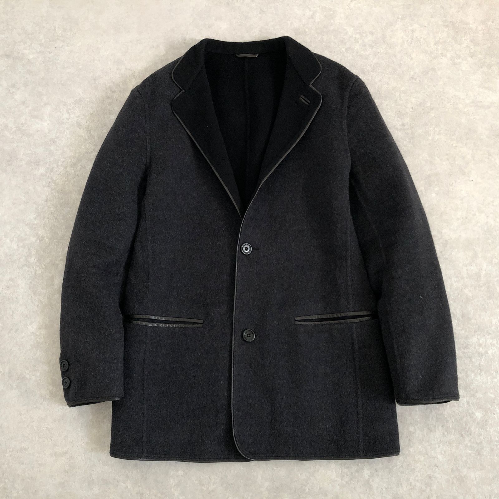 定価18万 Ermenegildo Zegna 超なめらか ウール素材 レザーパイピング ジャケット ブレザー エルメネジルド ゼニア