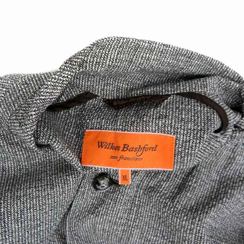 【商品名】ウィルクスバシュフォード Wilkes Bashford ジャケット スタンドカラー ミドル丈 XL グレー 黒 ブラック /HO31