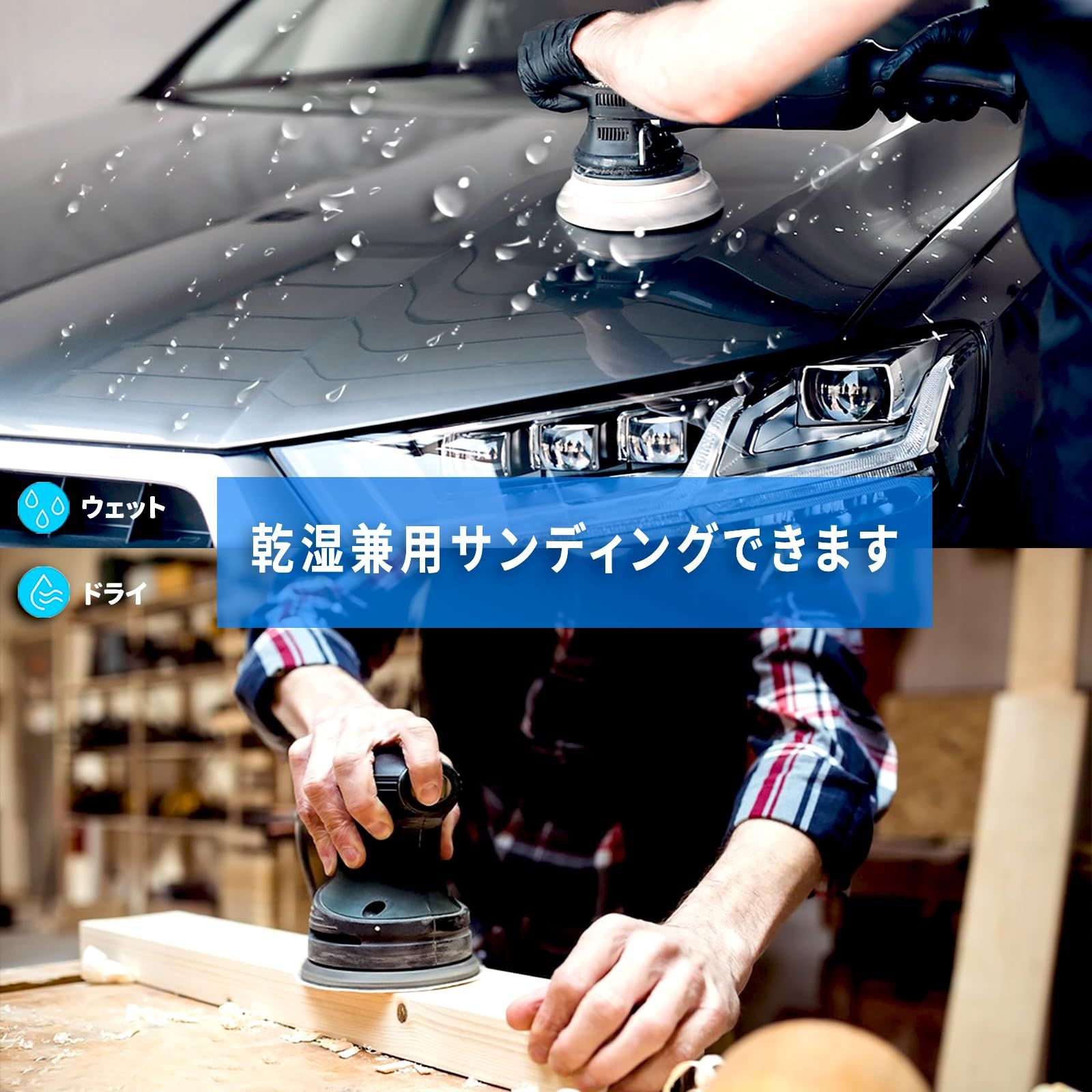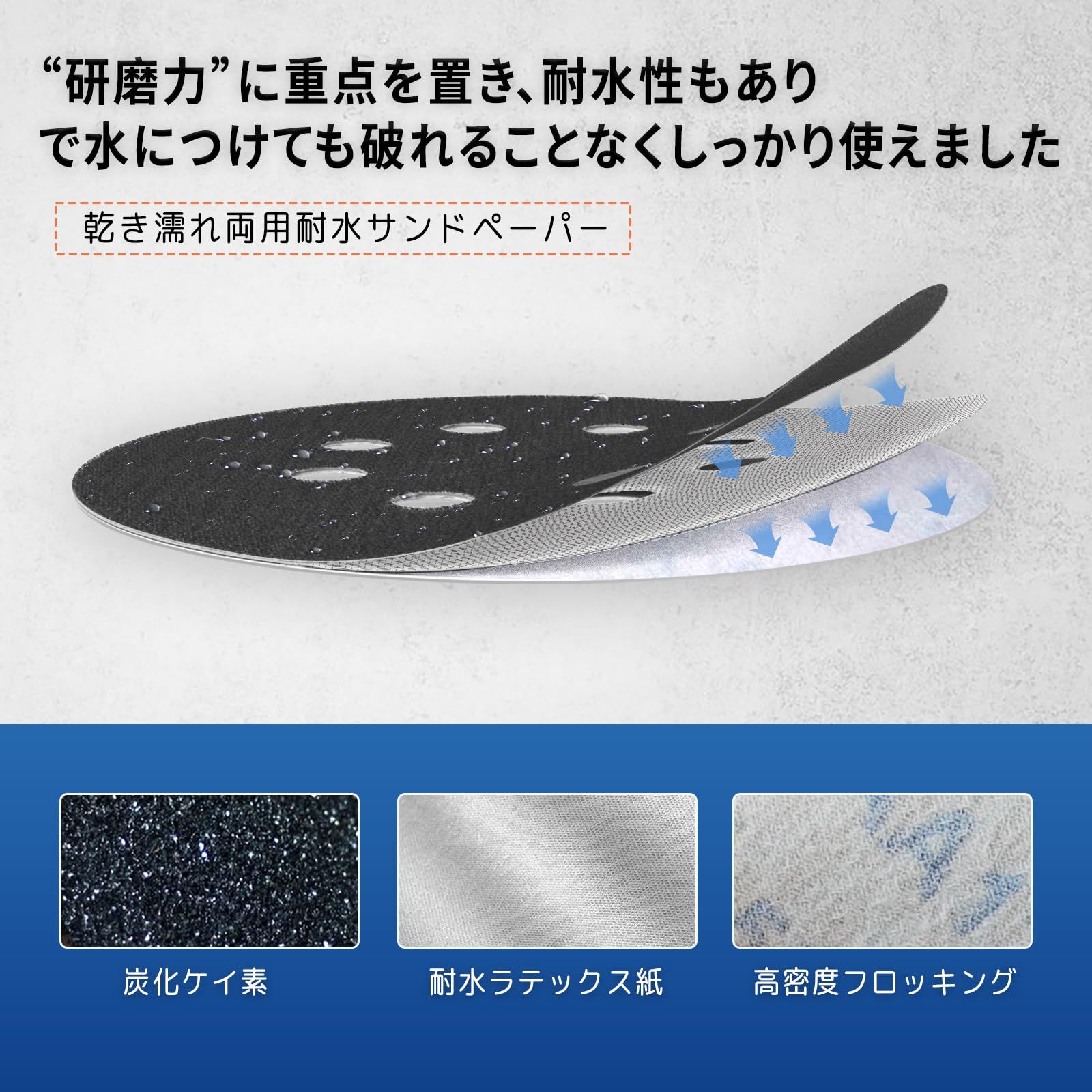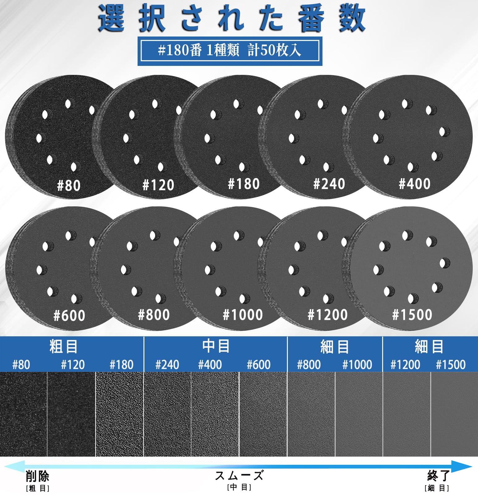 耐水サンドペーパー 125mm #180番 サンダー ペーパー(50枚入)サンディングディスク 粗目 サンディングペーパー 電動サンダー用ディスクペーパーヘッドライトの研磨 木工DIY作業に 金属磨き