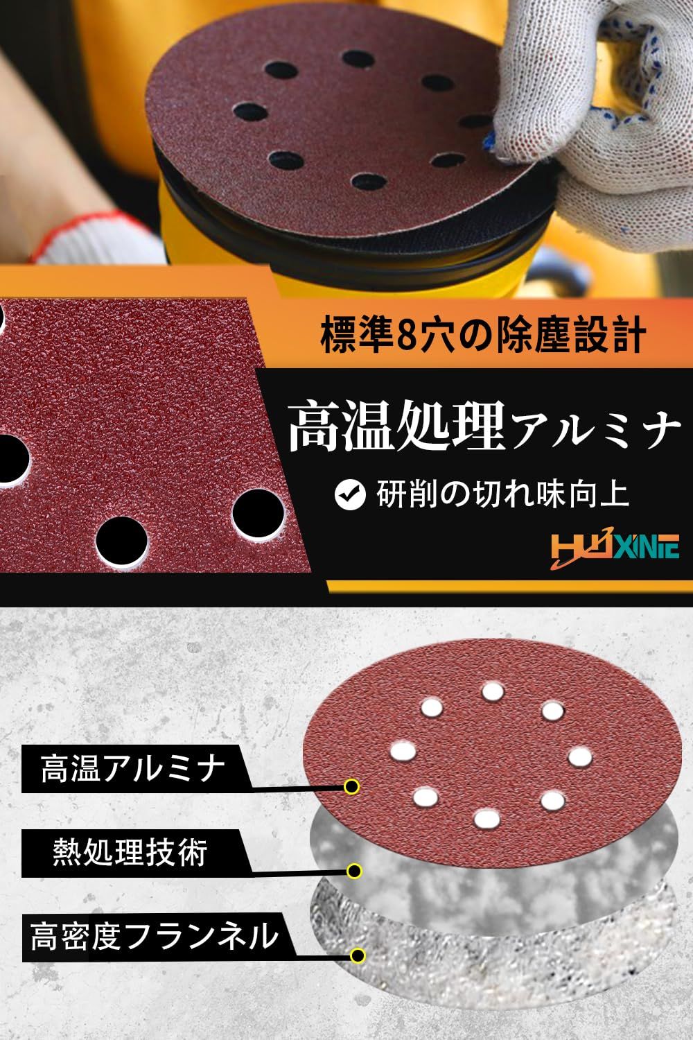 【素材の特徴】ディスクペーパー 125mm径 8穴 丸 特殊な熱処理を施した高品質の酸化アルミニウム製サンディングディスクで,耐久性;幅広い素材の研削・研磨に適しています;直径125mm/集塵孔8個で、クリーンで環境に優しいです;裏面は密着性に優れた高品質のフリース素材での面ファスナーサンドペーパー、取り外しや交換が非常に簡単です