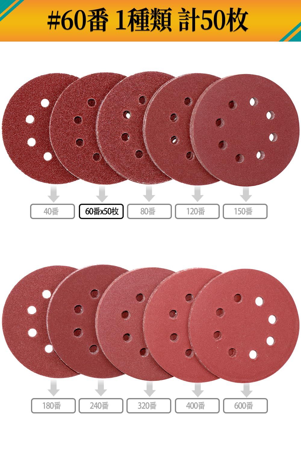 ディスクペーパー 125mm #60番 ランダムサンダー ペーパー 8穴 丸型 サンディングディスク マジック式,電動サンダー用サンドペーパー(40枚入)
