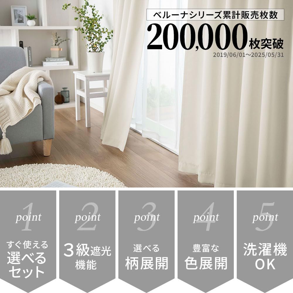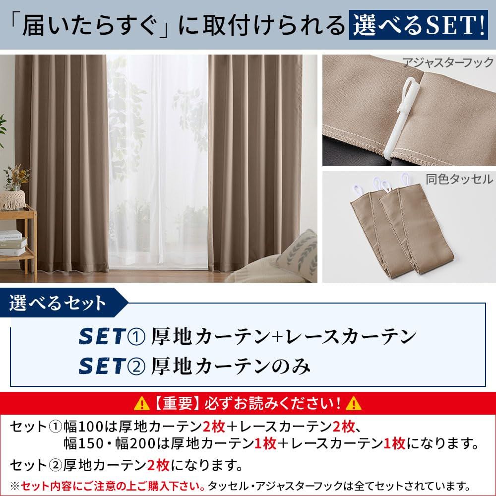 ベルーナ(BELLUNA) カーテン 4枚セット 遮光 幅100 無地 タッセル付 アジャスターフック付 (カーテン2枚 レース2枚 555814-508)