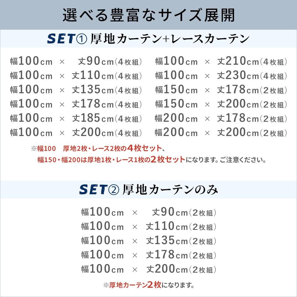 おしゃれな厚地カーテン2枚、レースカーテン2枚で買ったらすぐ使える
