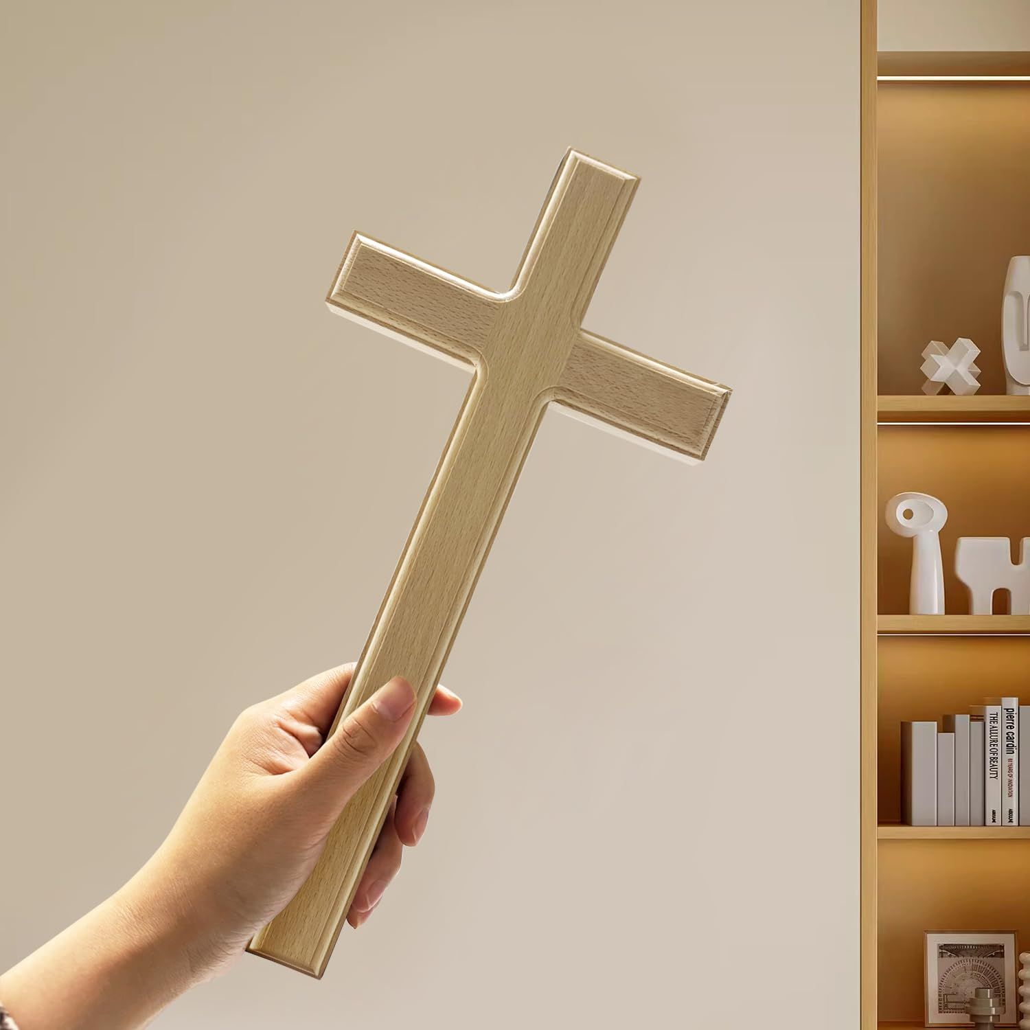 YUYAKESHI 壁掛けクロス 十字架 ブナ材製 十字 イエス・キリスト インテリア キリスト教 ギフト 教会学校 装飾 アンティーク 宗教 飾り 31*15*2cm(木色)