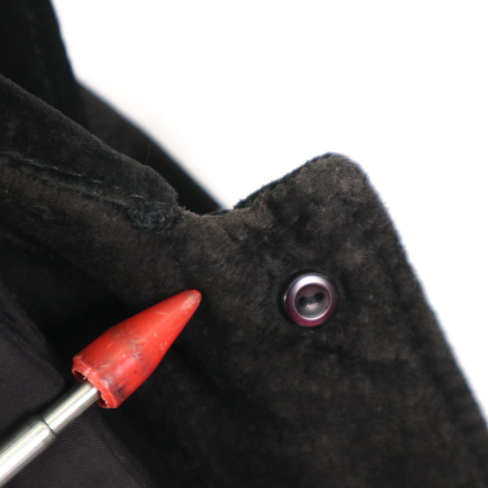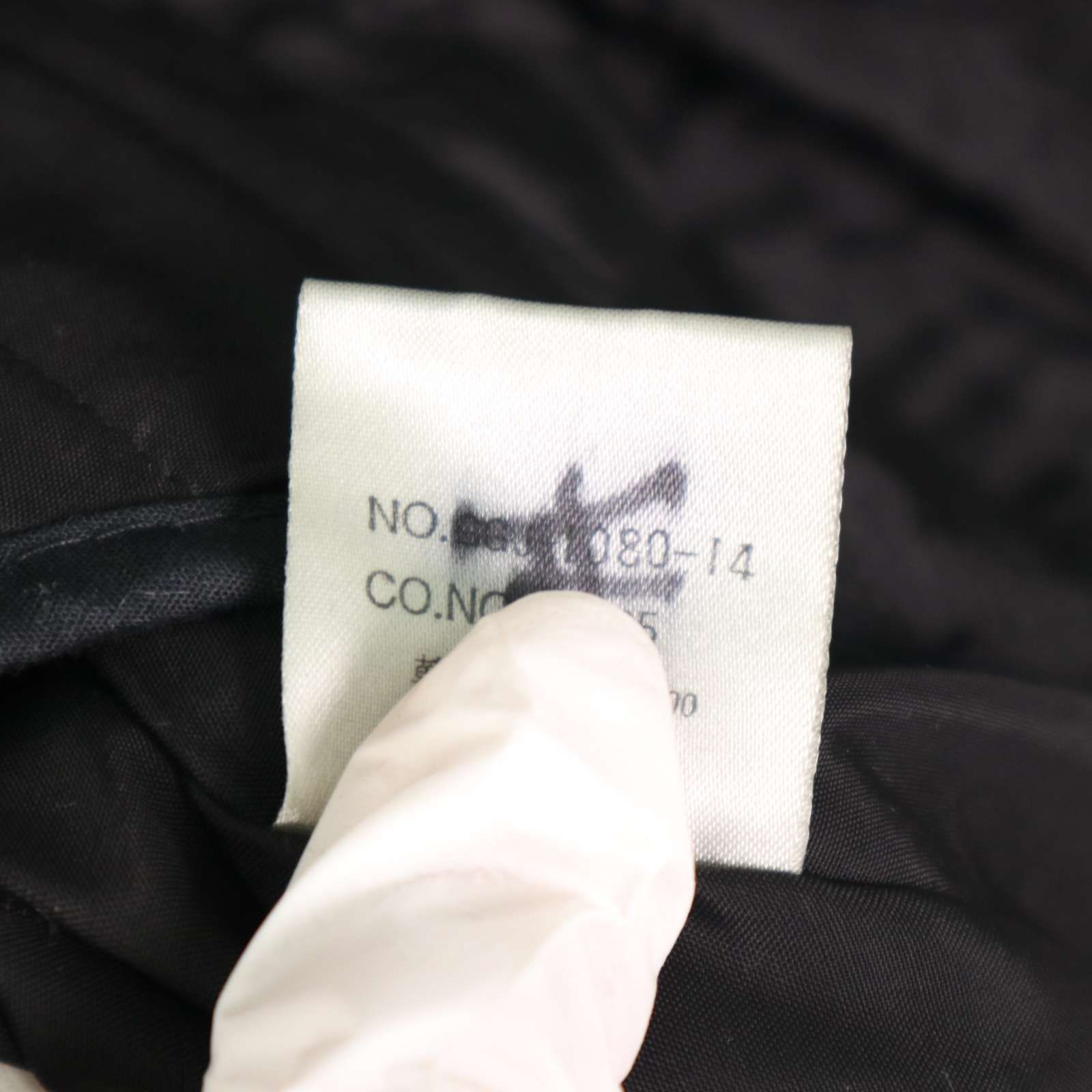 所々に薄い汚れと薄い擦れ、内側インナー留めボタンの欠品、タグに記入がございます。着用に問題はございません。