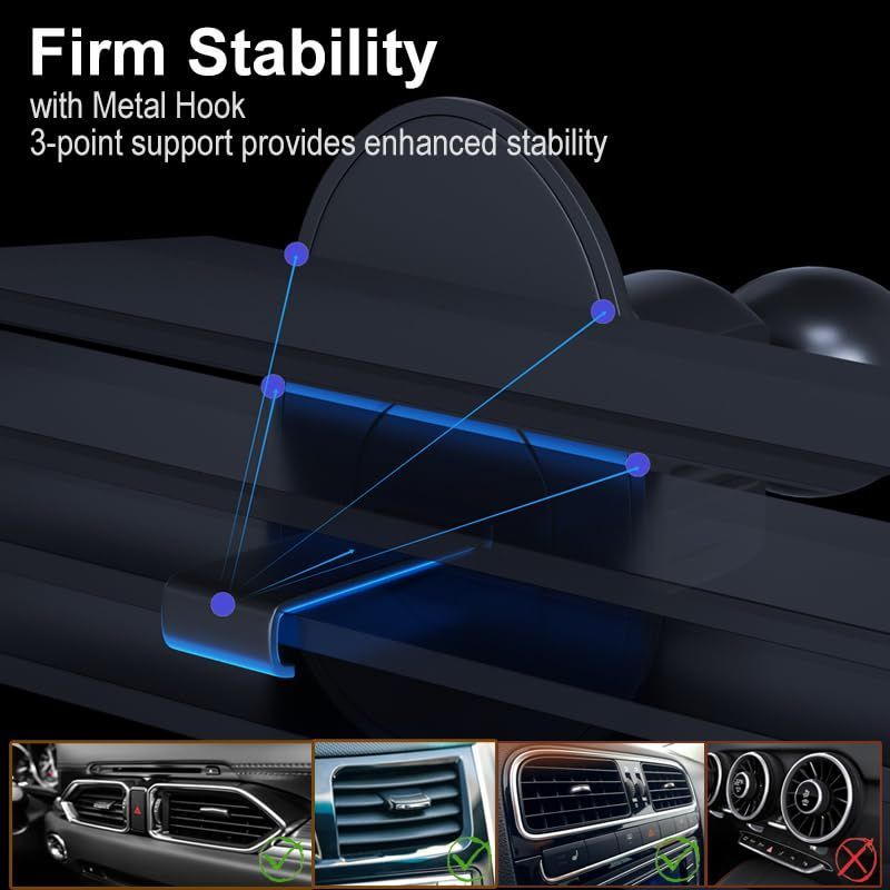 堅牢なベントホルダー:メタルフックベントホルダーデザインが特徴で、すべてのドライブ中に安定した安全な取り付け体験をします。