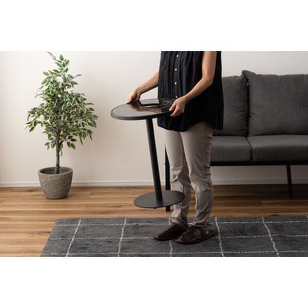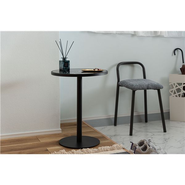 落ち着いた佇まいが印象的なサイドテーブル。ブラックスチールの脚が凛とした印象を与え、艶やかな石目調の天板が空間に深みを添えます。シンプルなデザインなので、様々なインテリアにすんなりとなじみ、空間にほどよいアクセントを加えます。上品な色味と素材感が調和し、上質で洗練された印象を演出します。
