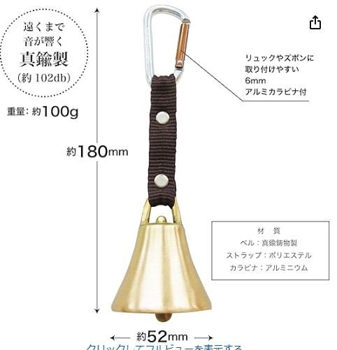 ●材質:ベル/真鍮、カラビナ/アルミニウム