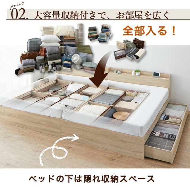 種類152:WK240(S+D)/匠モデルマットレス付/シナモングレージュ/ブラック ベッド 連結ベッド 収納ベッド ファミリーベッド 連結 ベッドフレーム マットレス付き 収納付き グレー 白 黒 宮付 おしゃれ 2コンセント付 すのこ ファミリー フレーム