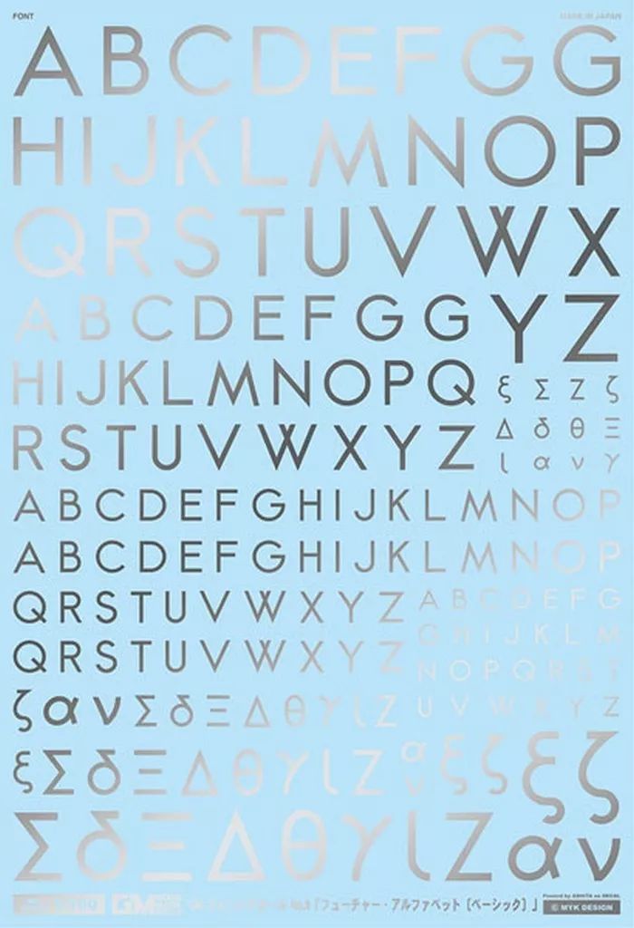商品解説■GM-750 1/100 GMフォントデカール No.8「フューチャー・アルファベット〔ベーシック〕」【シルバー】