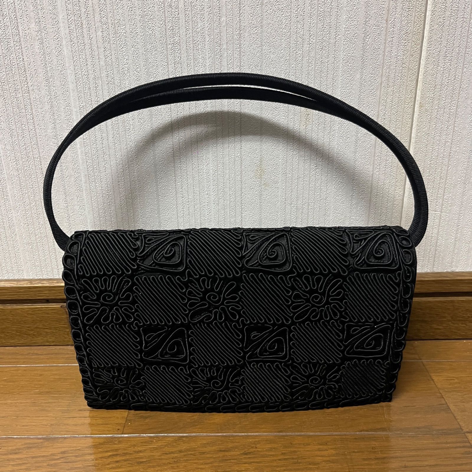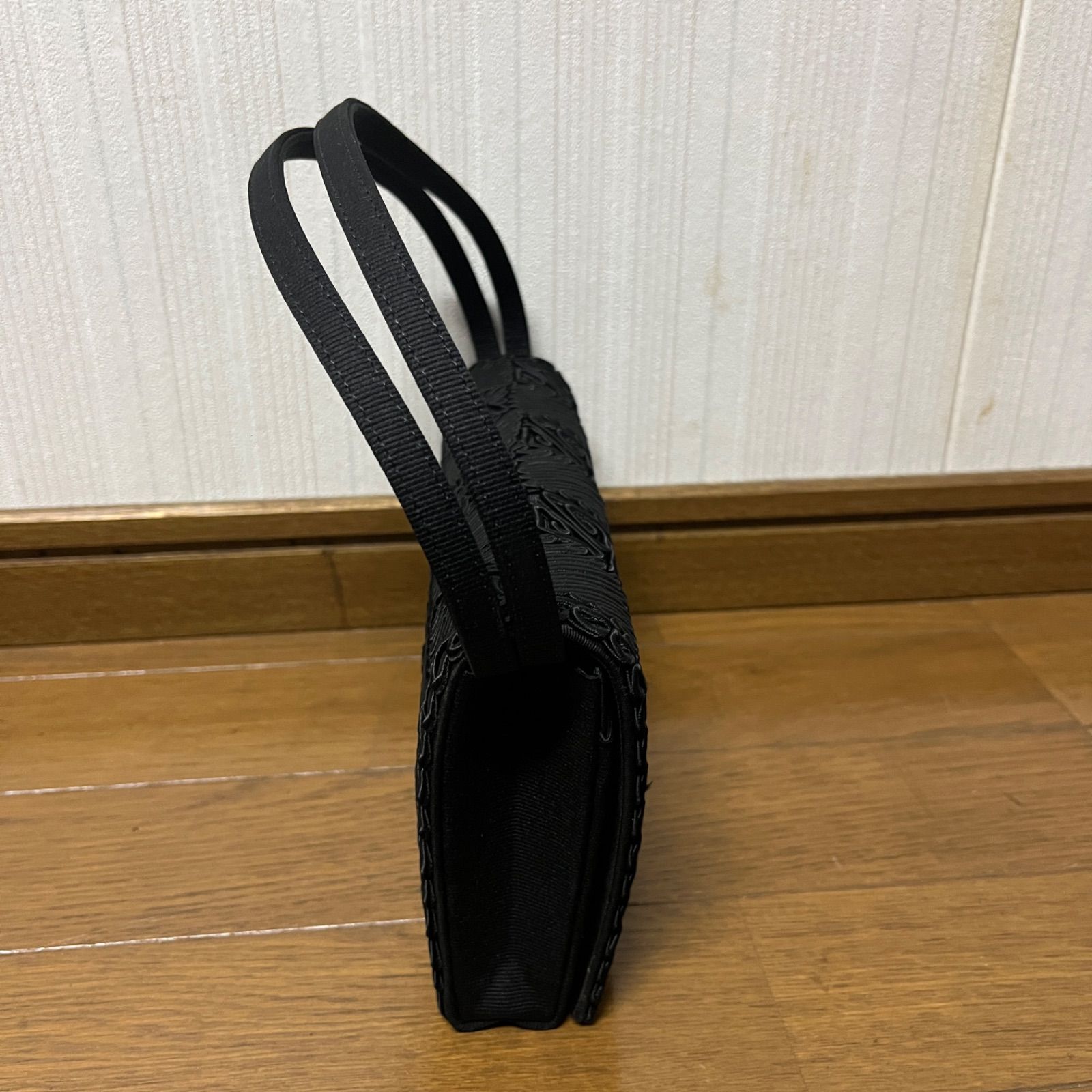 TOHPO フォーマルバッグ ハンドバッグ 冠婚葬祭 ブラック 黒 コード刺繍
