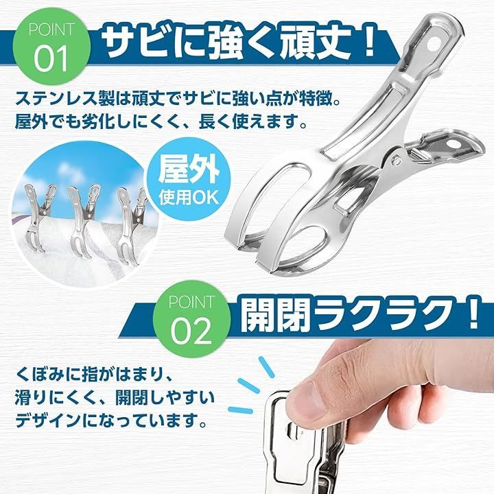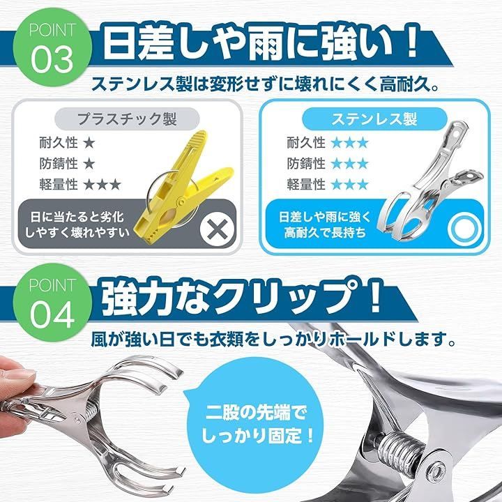 そんなプラスチック製の洗濯ばさみに、うんざりしていませんか?本製品は、錆びと紫外線劣化に極めて強い高純度ステンレスを採用。