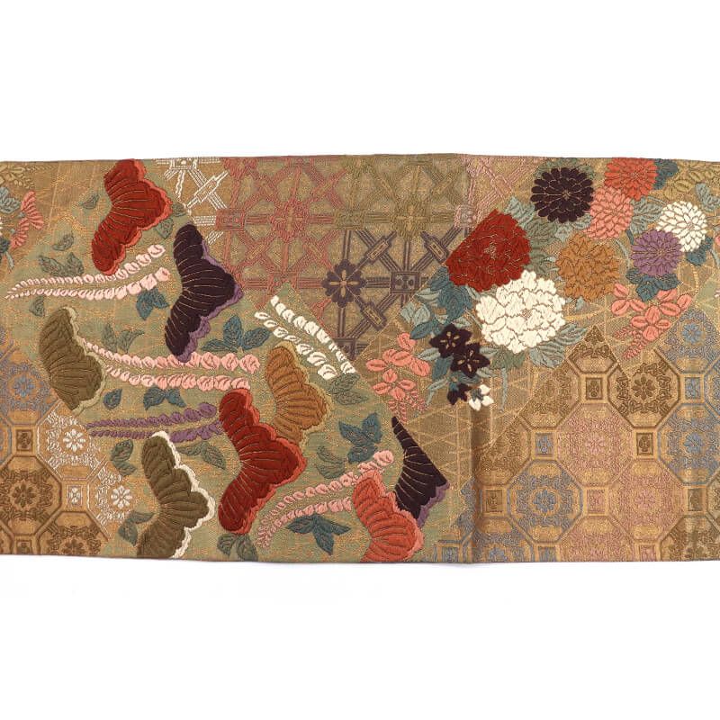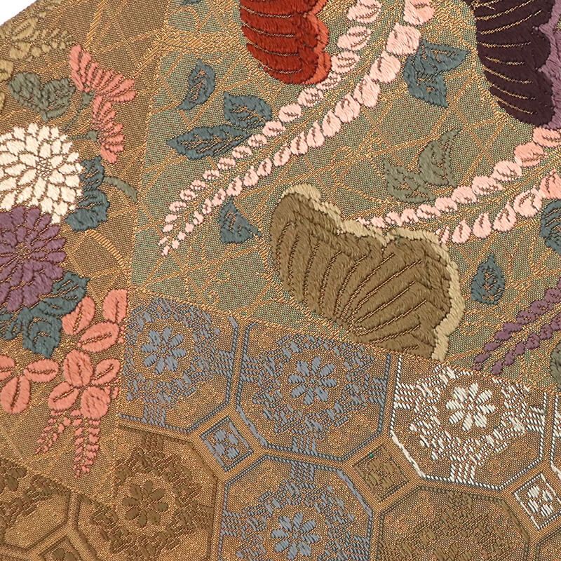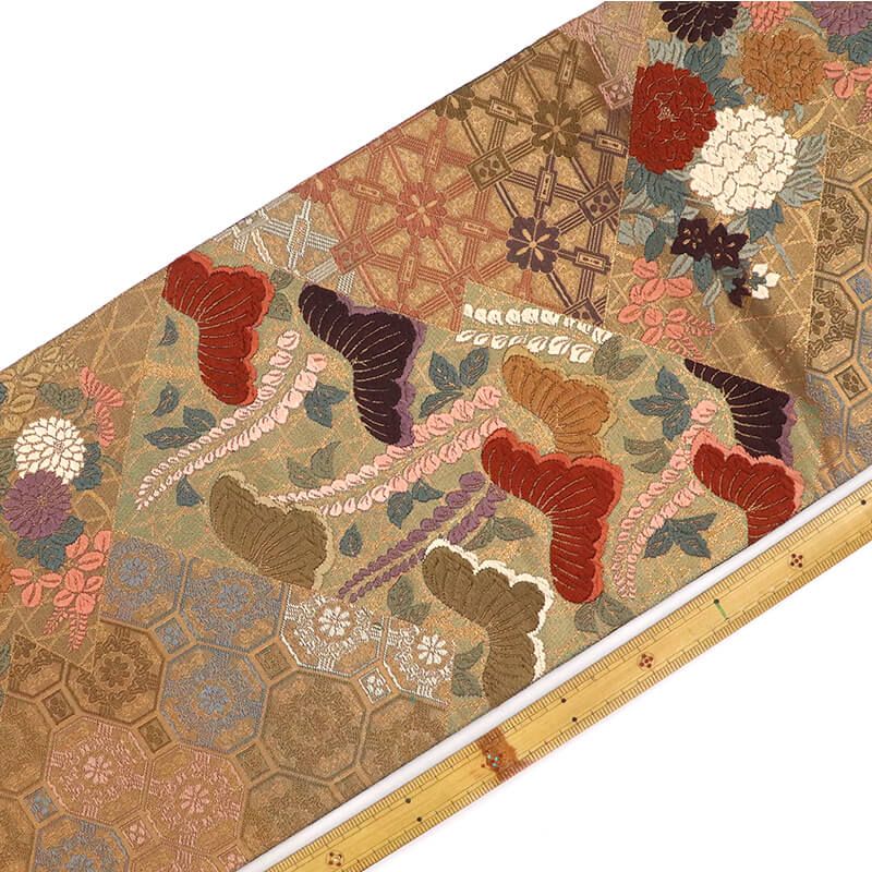 豪華な雰囲気の袋帯なので、 お着物の雰囲気によっては、黒留袖、 格式高い色留袖や訪問着など、 フォーマルシーンに活躍する一本です。