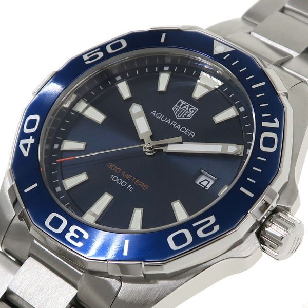 TAGHEUER(タグホイヤー)アクアレーサータグホイヤー唯一のダイバーズモデルとして絶大な信頼性と人気を誇るアクアレーサー。43mmのケースサイズにダイバーズモデルにの名にふさわしいブルー文字盤とブルーカラーのベゼルがオシャレなモデルです。クオーツモデルなので扱いも簡単で様々なスタイルにマッチします。当社提携の時計修理工房にて外装の仕上げと電池交換を行っております。裏蓋に軽いスレはございますが、目につく傷や気になる傷の無い良好なコンディションです。タグホイヤーの人気モデルアクアレーサーをお見逃し無く。■整備仕上げ・電池交換■ブレス内径約20.5cm
