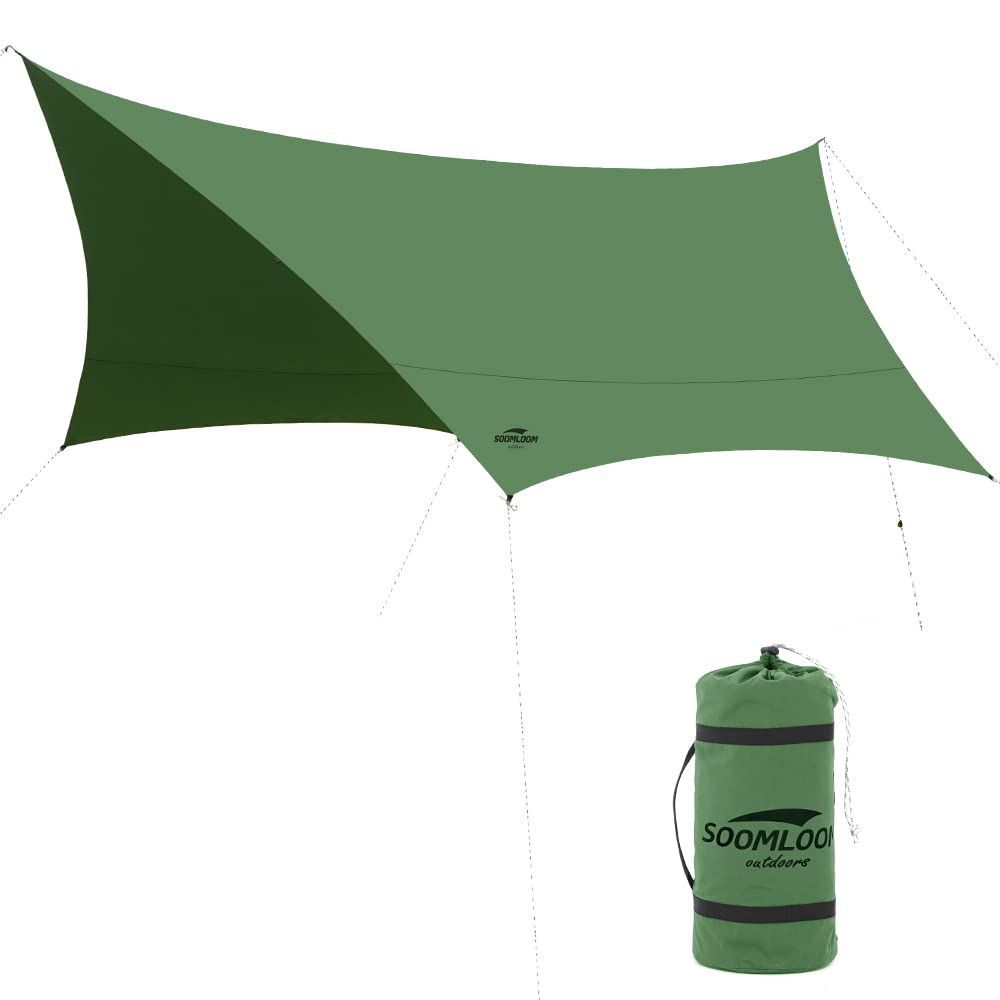 Color:グリーン Soomloomヘキサタープ4.2mx4.1m 焚き火可 ポリコットンTC ファイアプレイス 遮熱性/耐火性/耐水性優れ サンシェード アウトドア