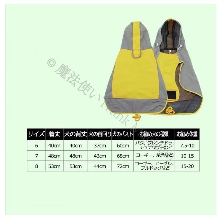 通気性と防水性のあるポリエステル生地、表面は蓮の葉ビーズで防水加工されており、裏地は柔らかいメッシュで、犬が快適に着用できます。