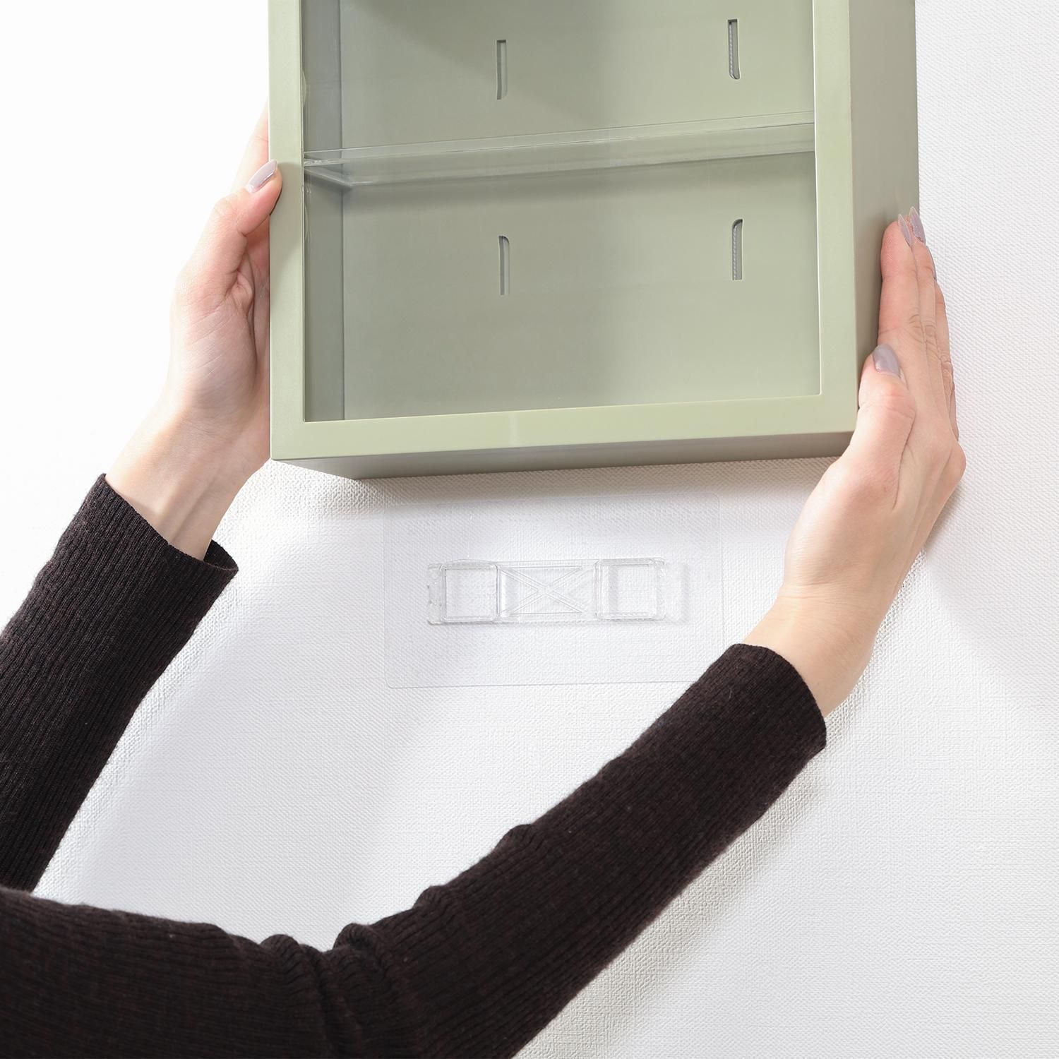 付属のシールを壁に貼り付けて固定するため、壁に穴を開けることなく簡単に取り付けられます。