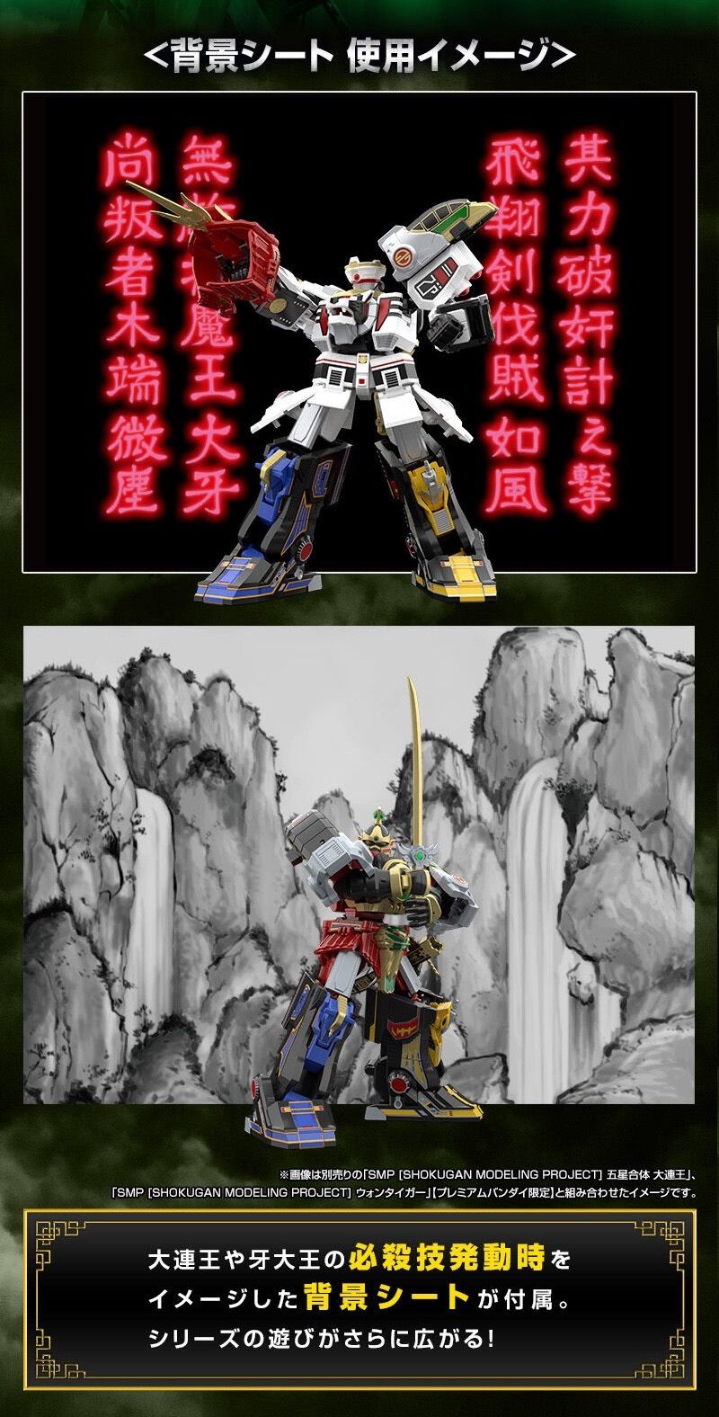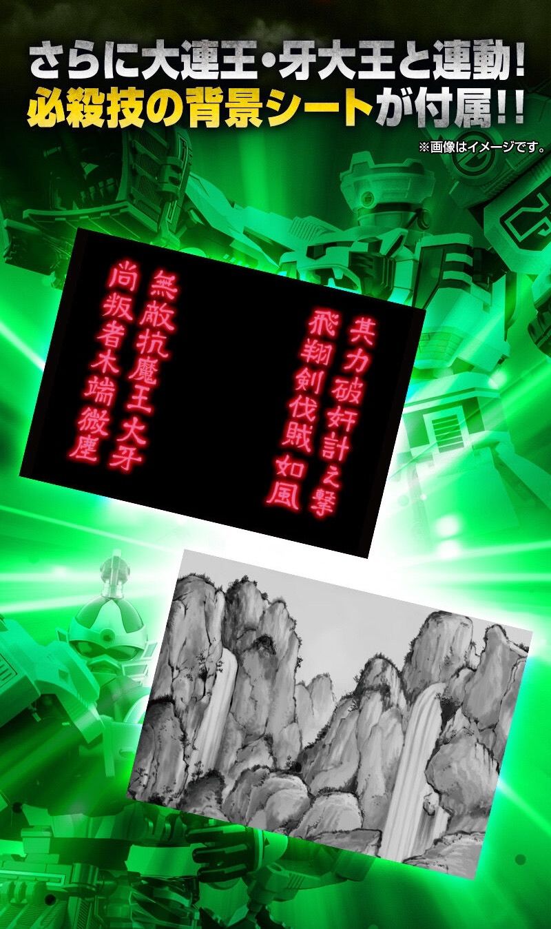 大連王や牙大王に使用可能な必殺技背景シートやウォンタイガーの見栄えアップパーツが付属した豪華なセット内容です。