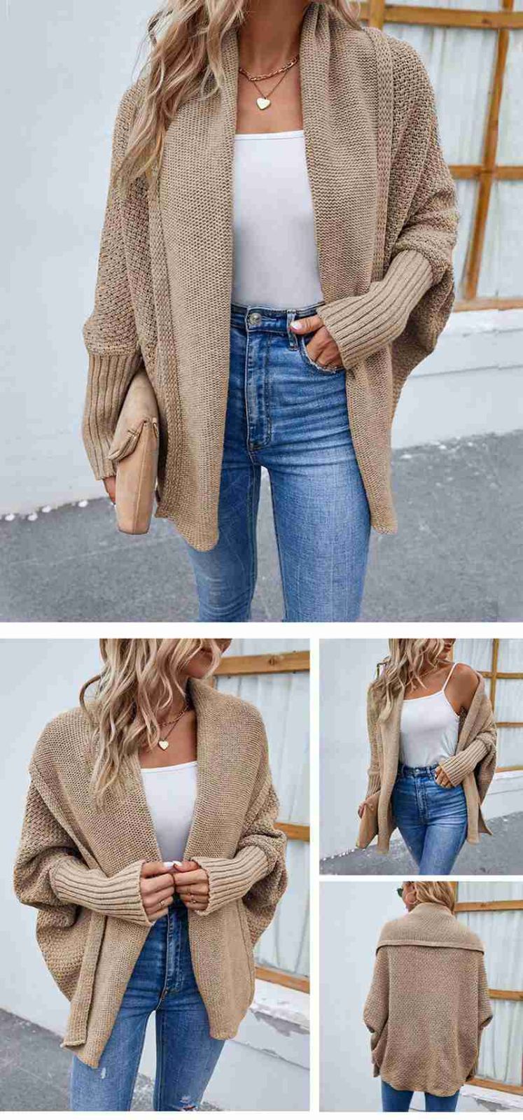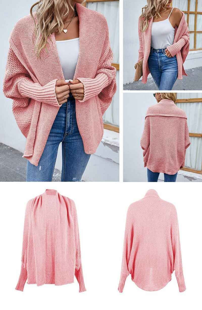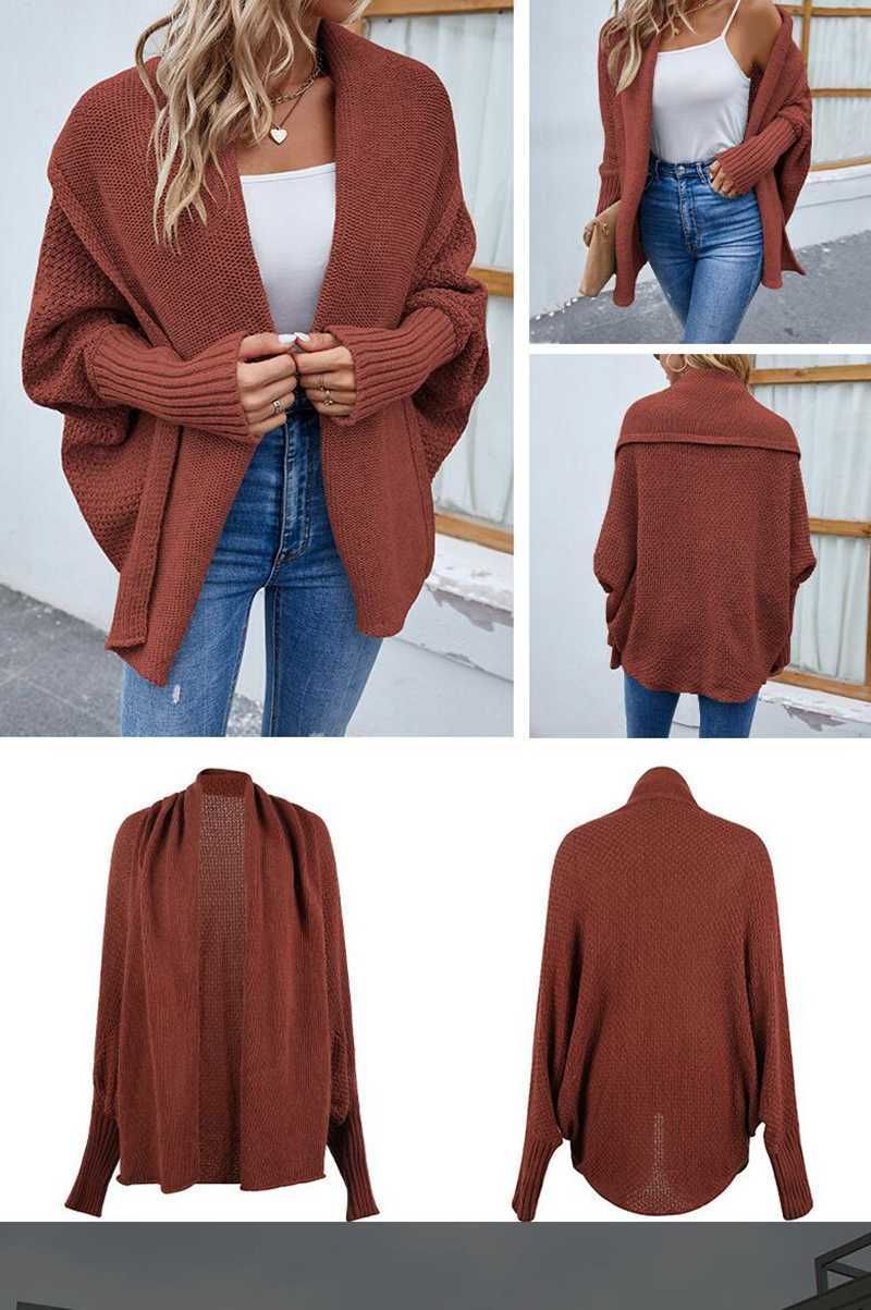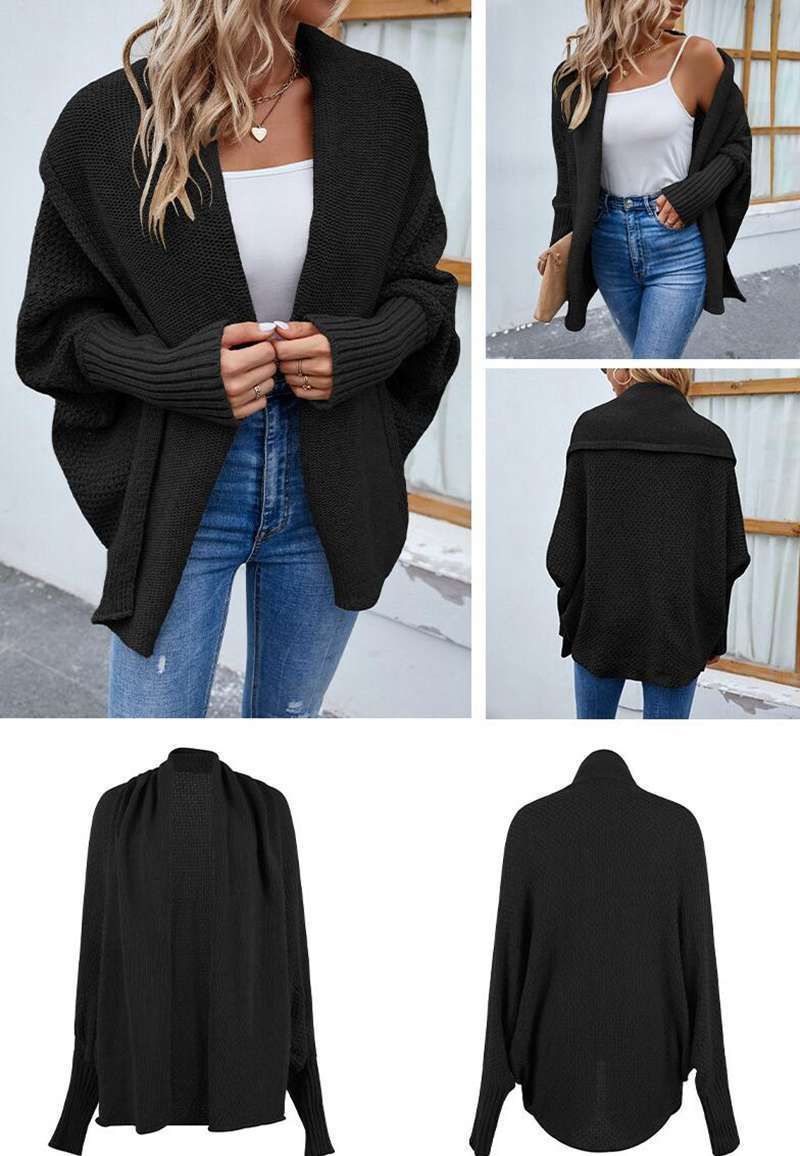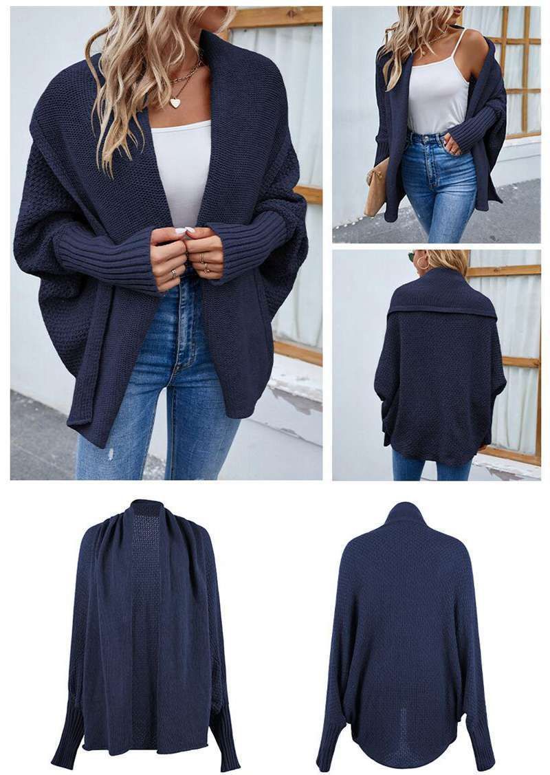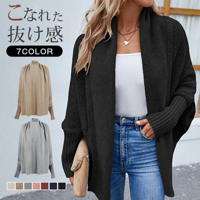 ニットカーディガン レディース ドルマンスリーブ 袖長リブ ドルマン袖 体型カバー ニットポンチョ セーター ドロップショルダー トッパー 羽織り コーディガン ボレロ ミドル丈 トップス 秋冬 大きいサイズ アウター きれいめ バルーン袖 シンプル オフィス