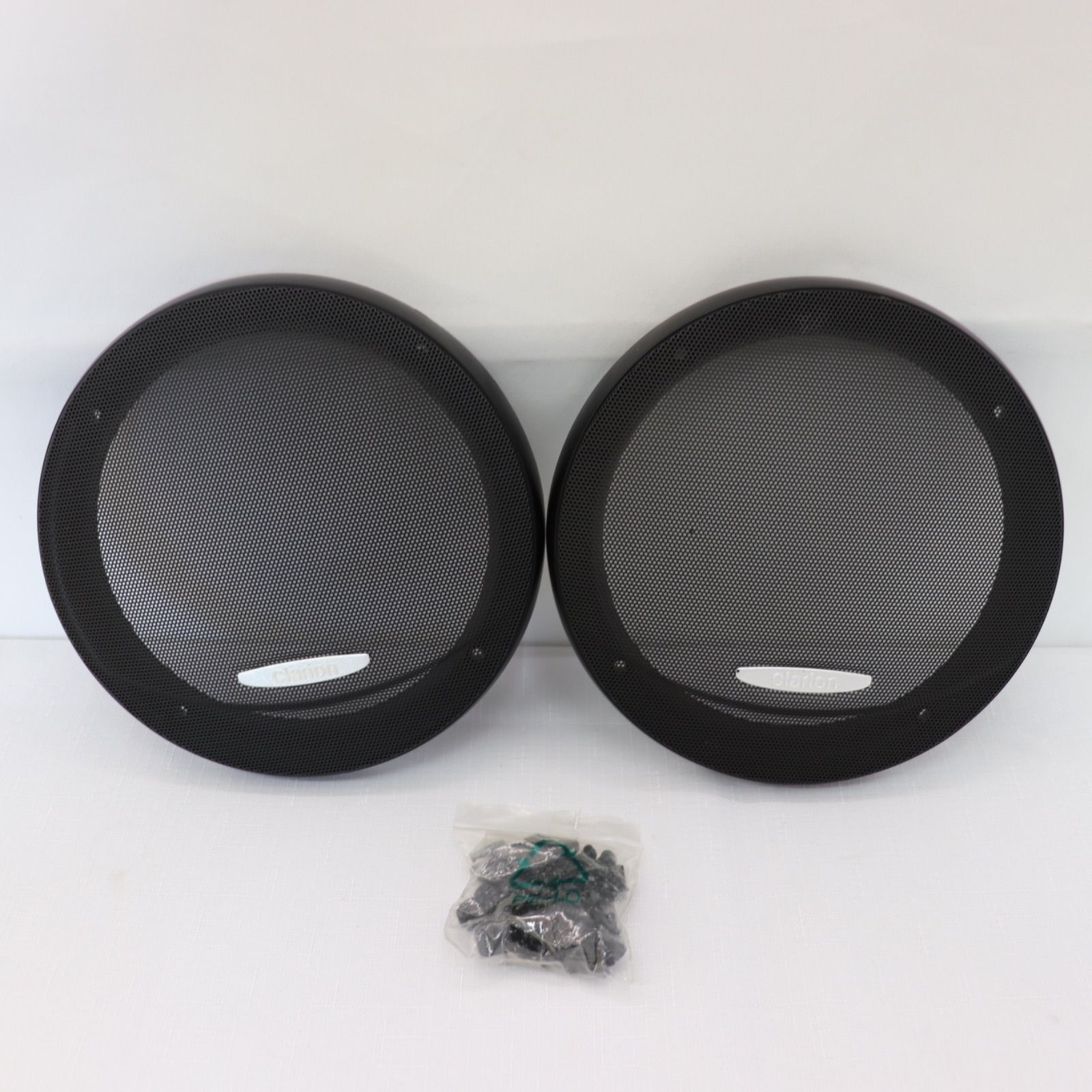 Clarion クラリオンのスピーカーグリル2個セットです。クルマのスピーカー部に装着して保護するパーツで、交換用・補修用・カスタム用として幅広く活用できます。シンプルで合わせやすいパーツです。