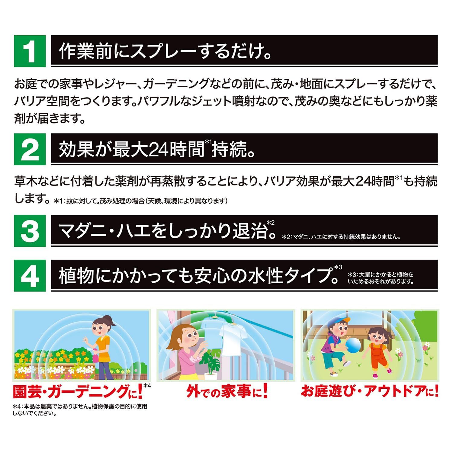 効果が24時間持続草木などに付着した薬剤が再蒸散することにより