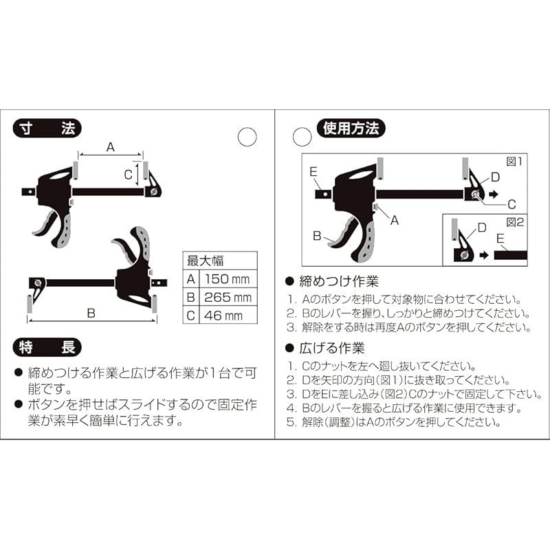商品名:【迅速】イーバリュー(E-Value) 樹脂製 クイックバークランプ 口の開き約150mm 奥行46mm ERC-150S