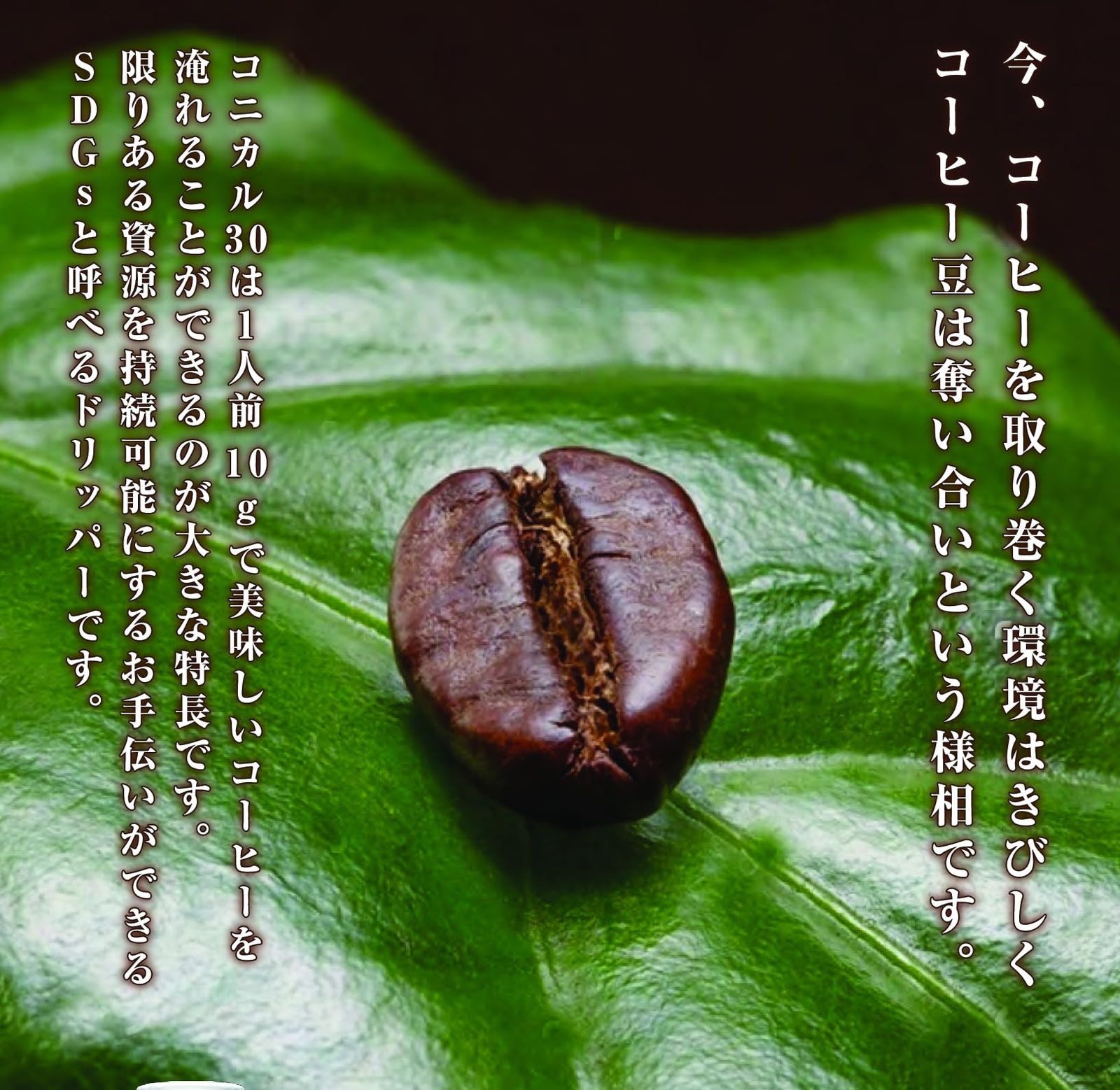 この30°という角度によりドリッパー内のコーヒー層が深くなるため、他の円錐形ドリッパーよりも、1杯分でコクのあるコーヒーを抽出することができます。