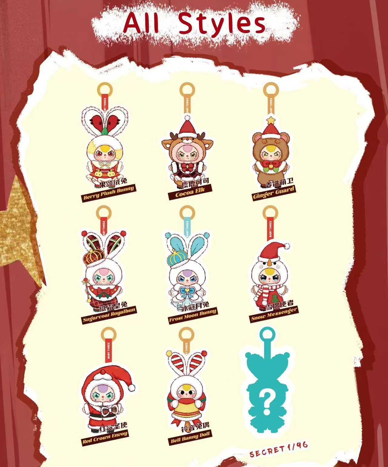 特徴: ふわふわした素材感と、ウサギをモチーフにした様々なクリスマス衣装のデザインが魅力です。キーホルダーやバッグチャームとして使えるサイズのものが多いです