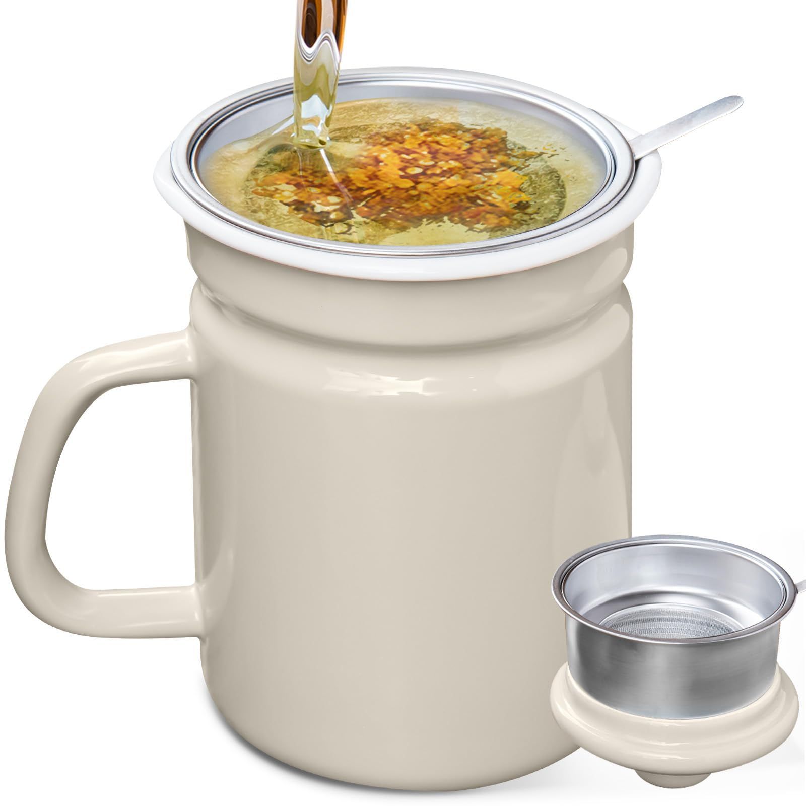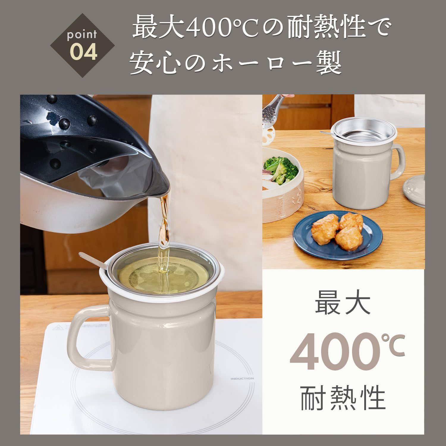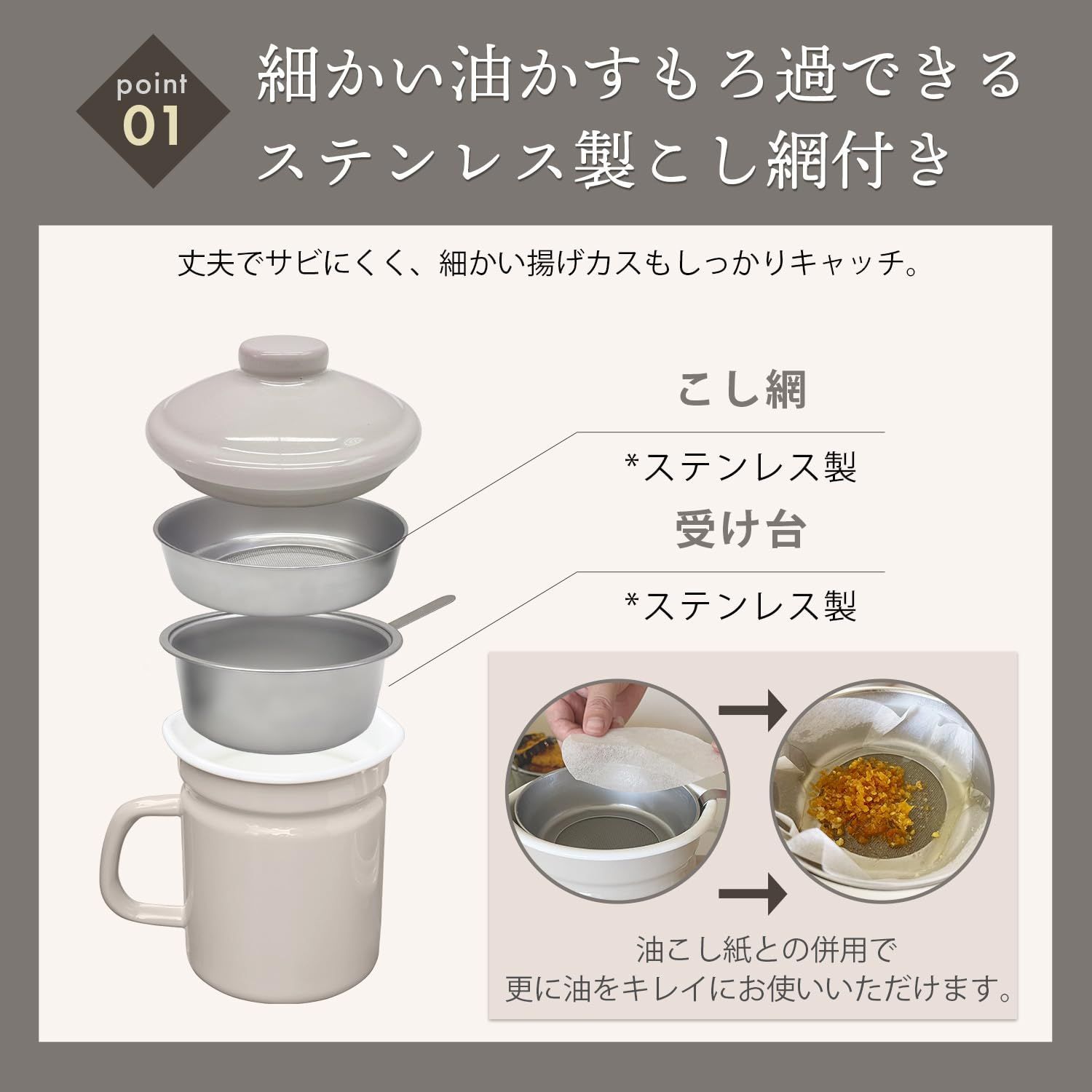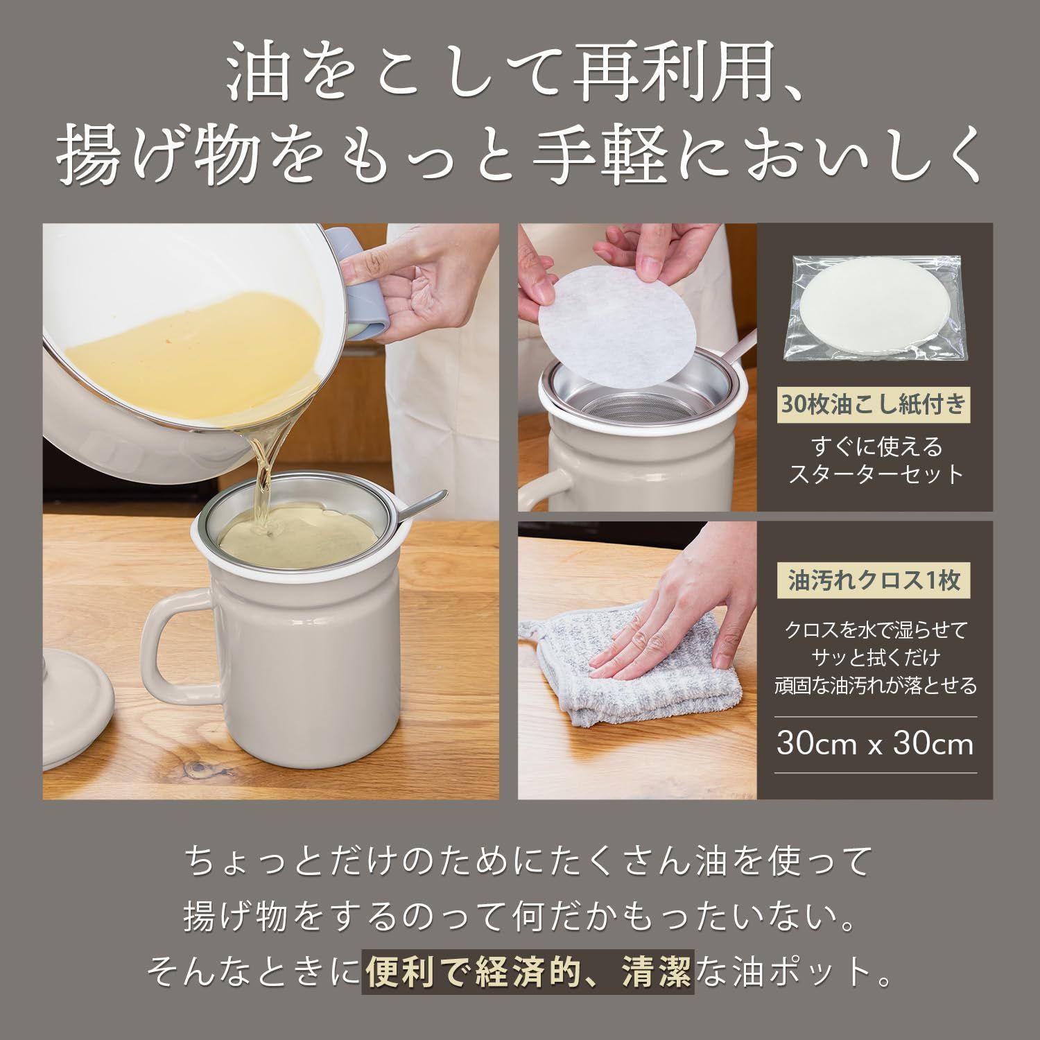 【大容量&高耐熱性】ホーロー 油ポット グレージュ 1.1L 油こし紙30枚付き 琺瑯製 オイルポット 油こし器 ステンレスフィルター 残留物を濾過 揚げ物油入れ 油処理 キッチン用品 一人暮らし コンパクト ギフト 敬老の日