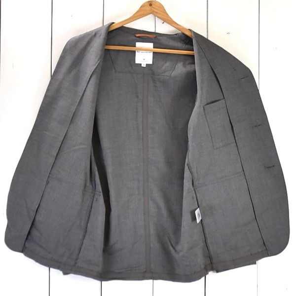 3つボタンシングル。段返り。フラップパッチポケット。ノーベント。袖口ノーボタン。開き見せ。背抜き。ネーム刺繍なし。この機会に是非!