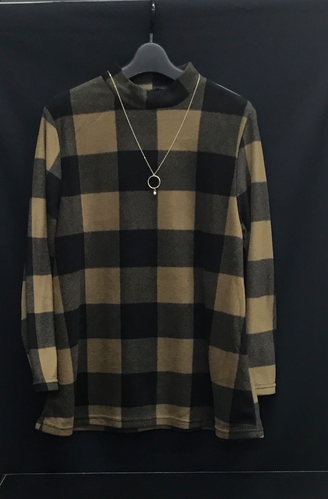 フリースチュニック 格子柄カットソー ハイネツクカットソー アクセサリー付 単品販売