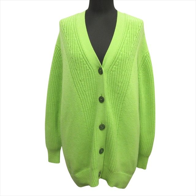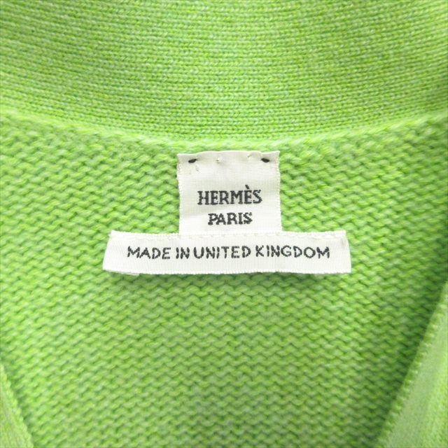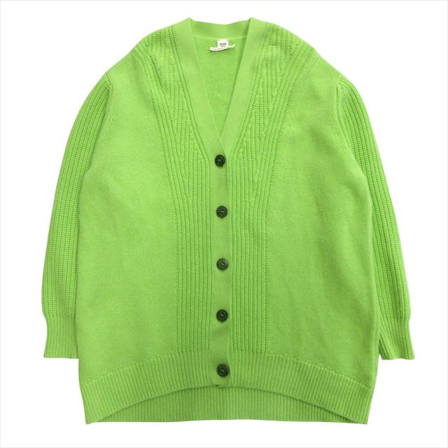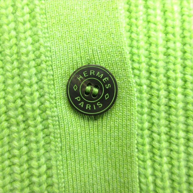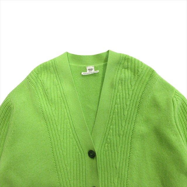 【商品名】美品 23ss エルメス HERMES セリエボタン オーバーサイズ カーディガン ニット セーター カシミヤ コットン 34 緑 グリーン レディース◆12