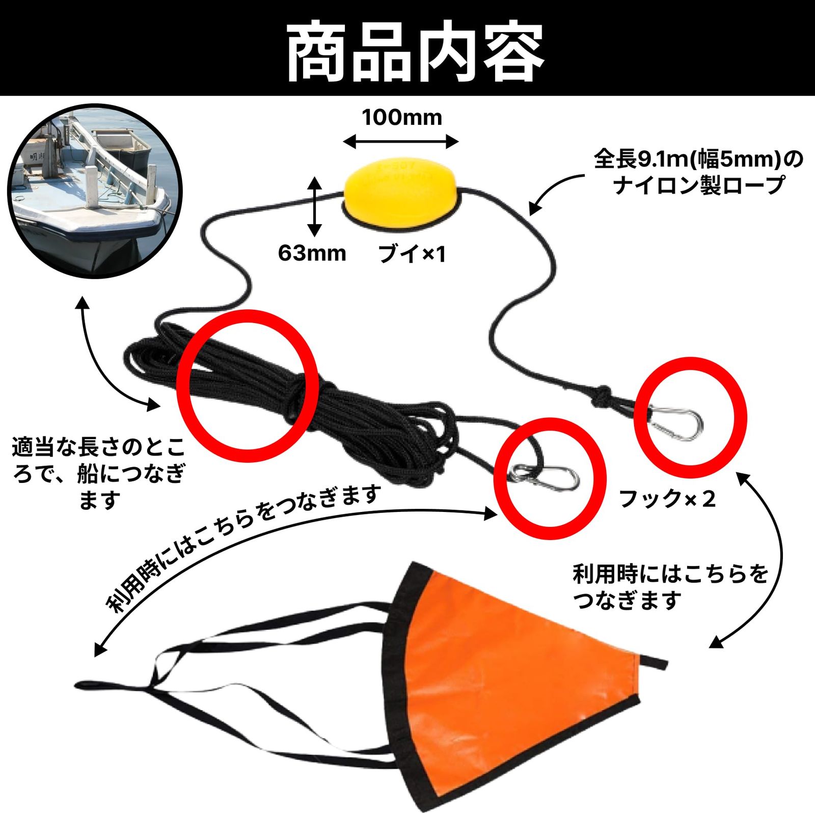 【商品内容】 パラシュートアンカー×1、フロート(浮き、ブイ)×1、カラビナ付きロープ×1【商品説明】