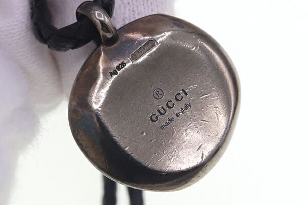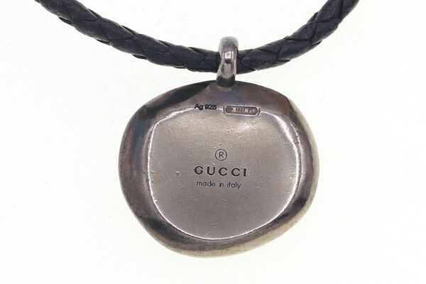 グッチネックレスクレストコイン270669SVスターリングシルバー925レザー中古チョーカーアクセサリーペンダント紋章ロゴレディースメンズGUCCI