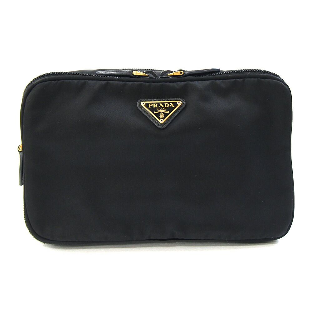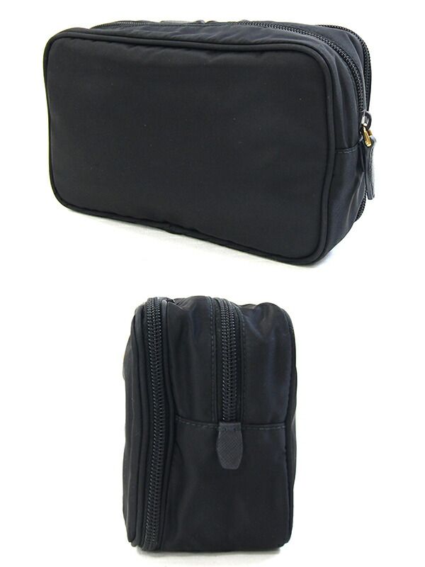 プラダポーチブラックゴールド金具ナイロンレザー中古トラベルポーチメイクコスメポーチ小物入れロゴレディースPRADA