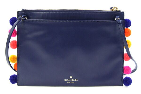 ケイトスペードショルダーバッグスパイスシングズアップPWRU5628ネイビーレザー中古マチ無し斜め掛けポシェットラクダクロスボディレディースkatespade