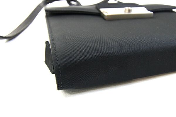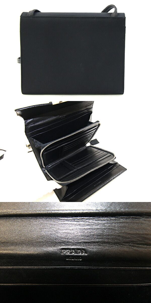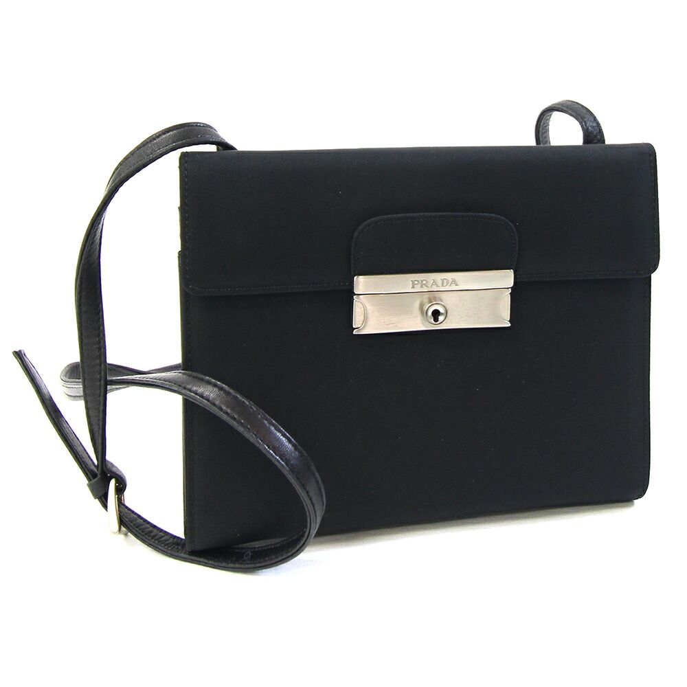 プラダショルダーバッグブラックナイロンレザー中古斜め掛けショルダーウォレットポシェットロゴミニバッグレディースPRADA